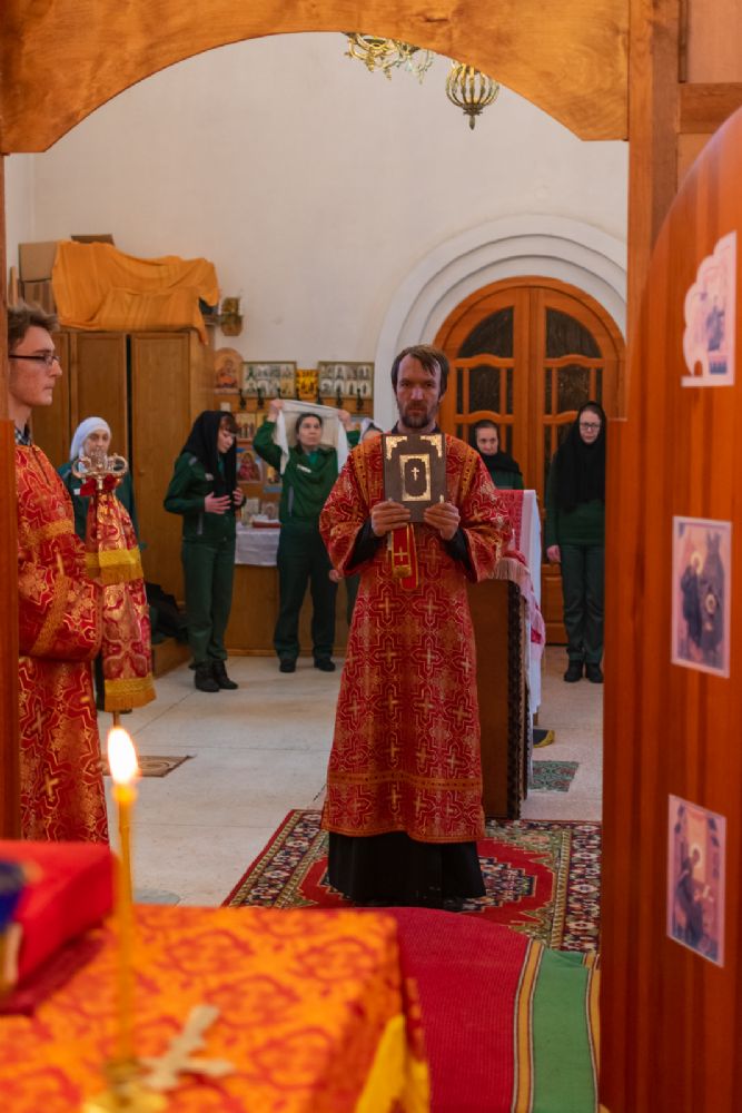 После Литургии был совершен молебен великомученице Анастасии с чтением Евангелия и молитвы.