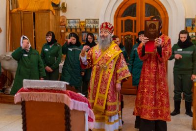 4 января в день памяти великомученицы Анастасии Узорешительницы митрополит Йошкар-Олинский и Марийский Иоанн возглавил Божественную литургию в храме великомученицы Анастасии исправительной колонии №7.