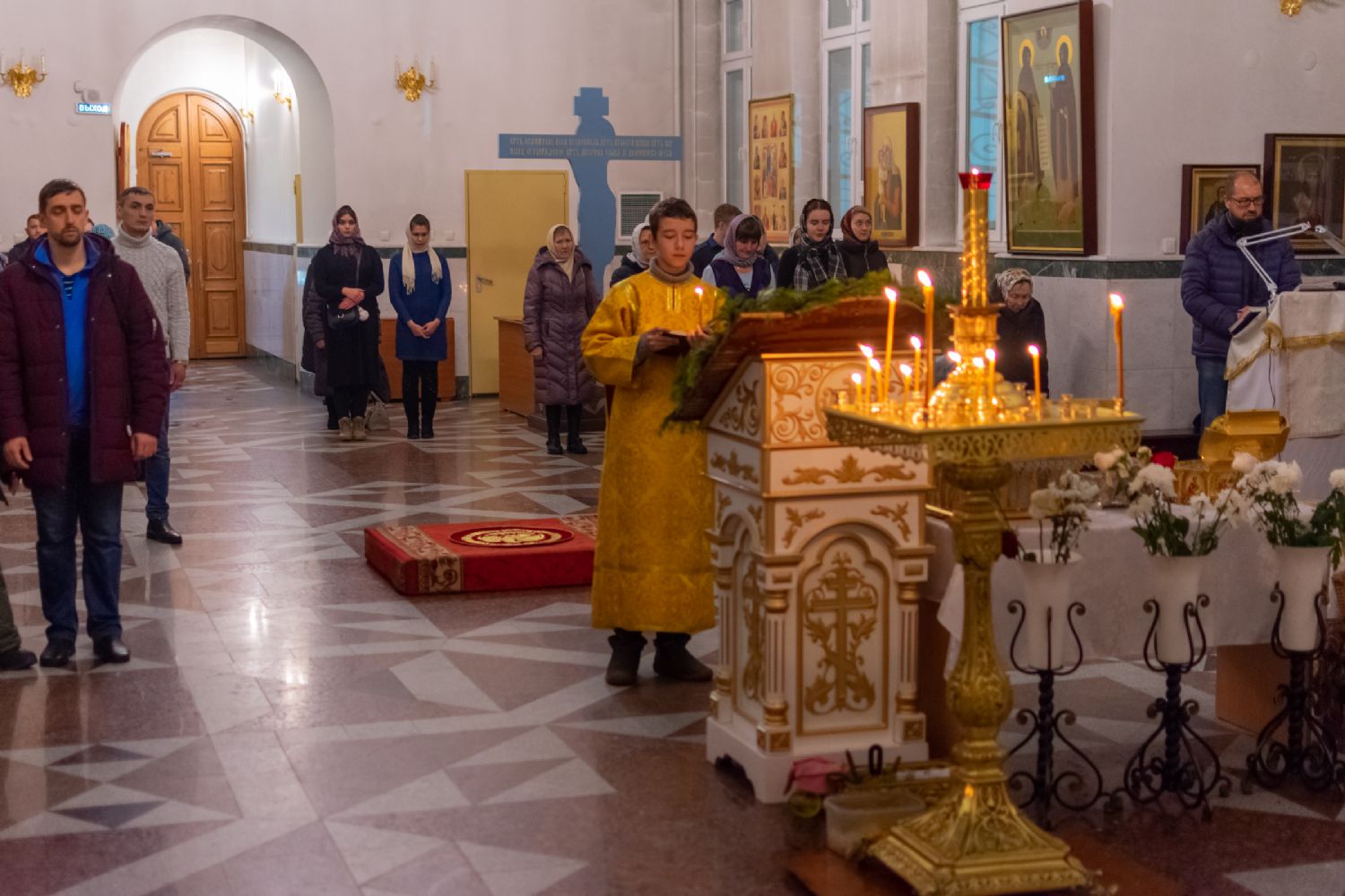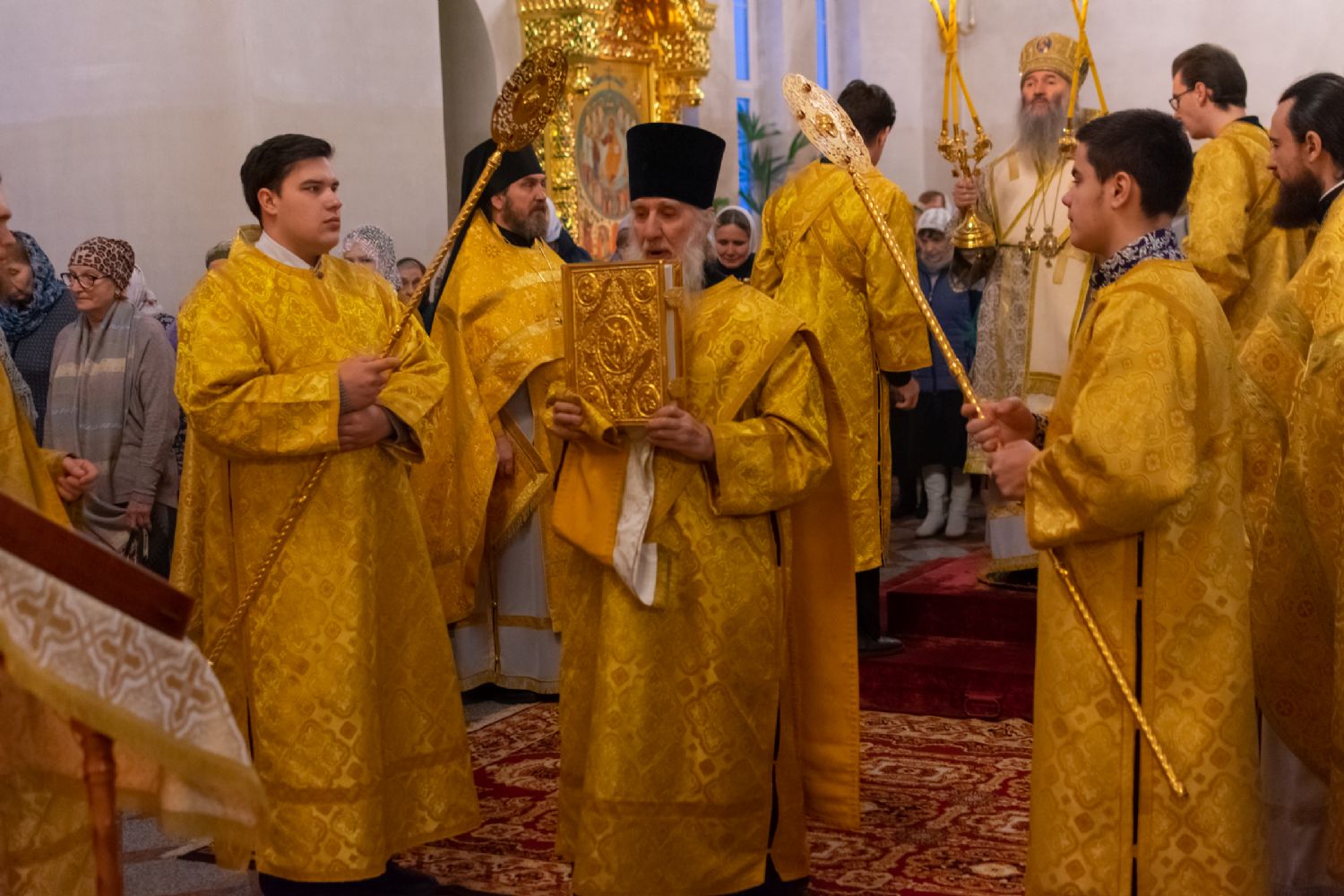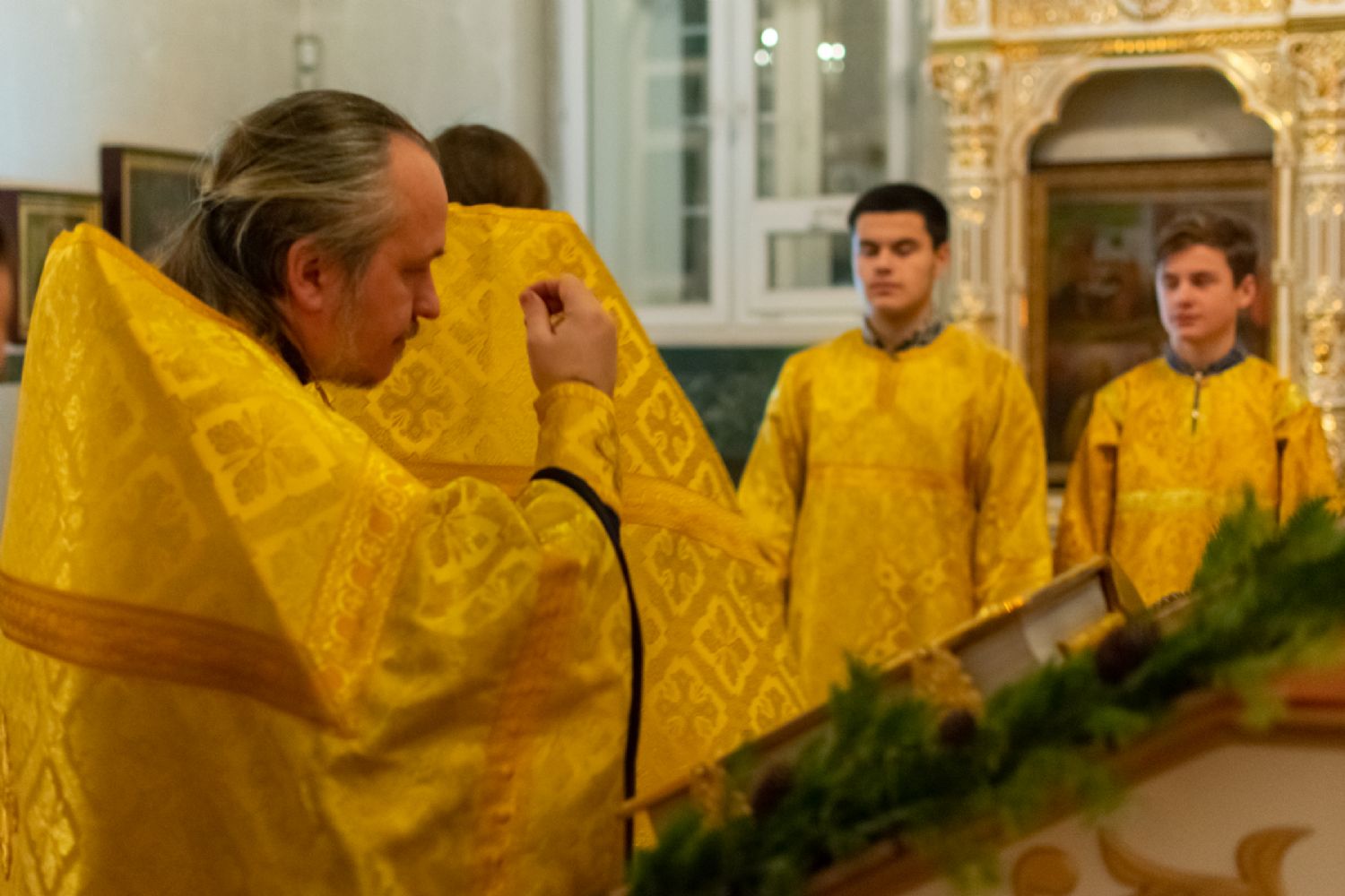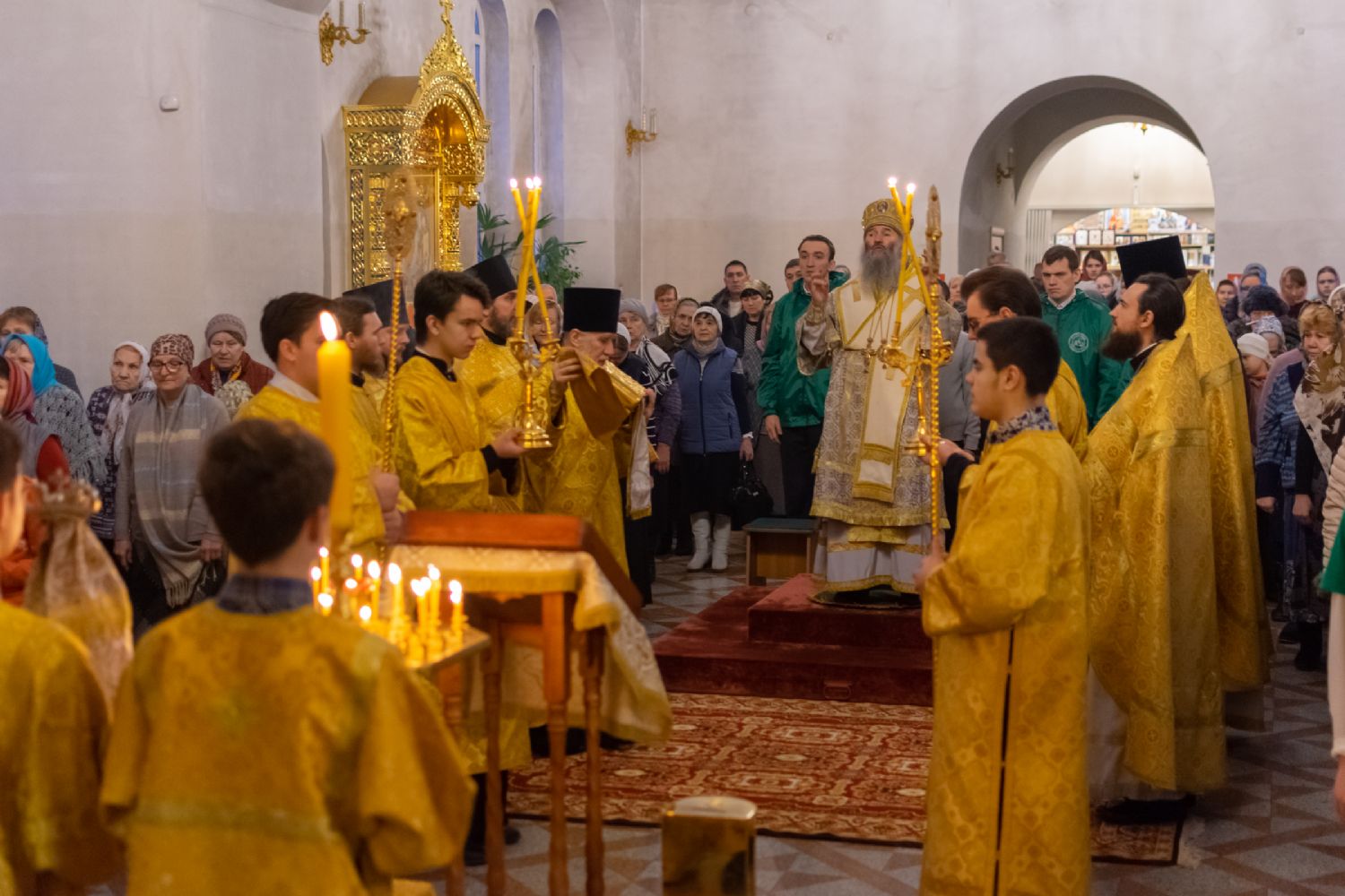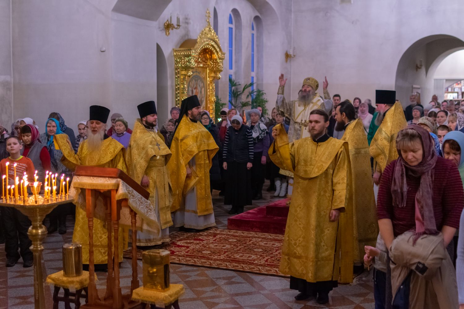 За Всенощным бдением Владыке сослужили секретарь Йошкар-Олинского епархиального управления иеромонах Серафим (Пасанаев), настоятель собора иерей Алексий Кирюшкин, клирики собора иереи Леонид Вылекжанин, Андрей Кончаков, диакон Алексий Кузнецов и клирик храма Рождества Пресвятой Богородицы с. Семеновка протодиакон Михаил Козловский. Песнопения исполнял хор собора.