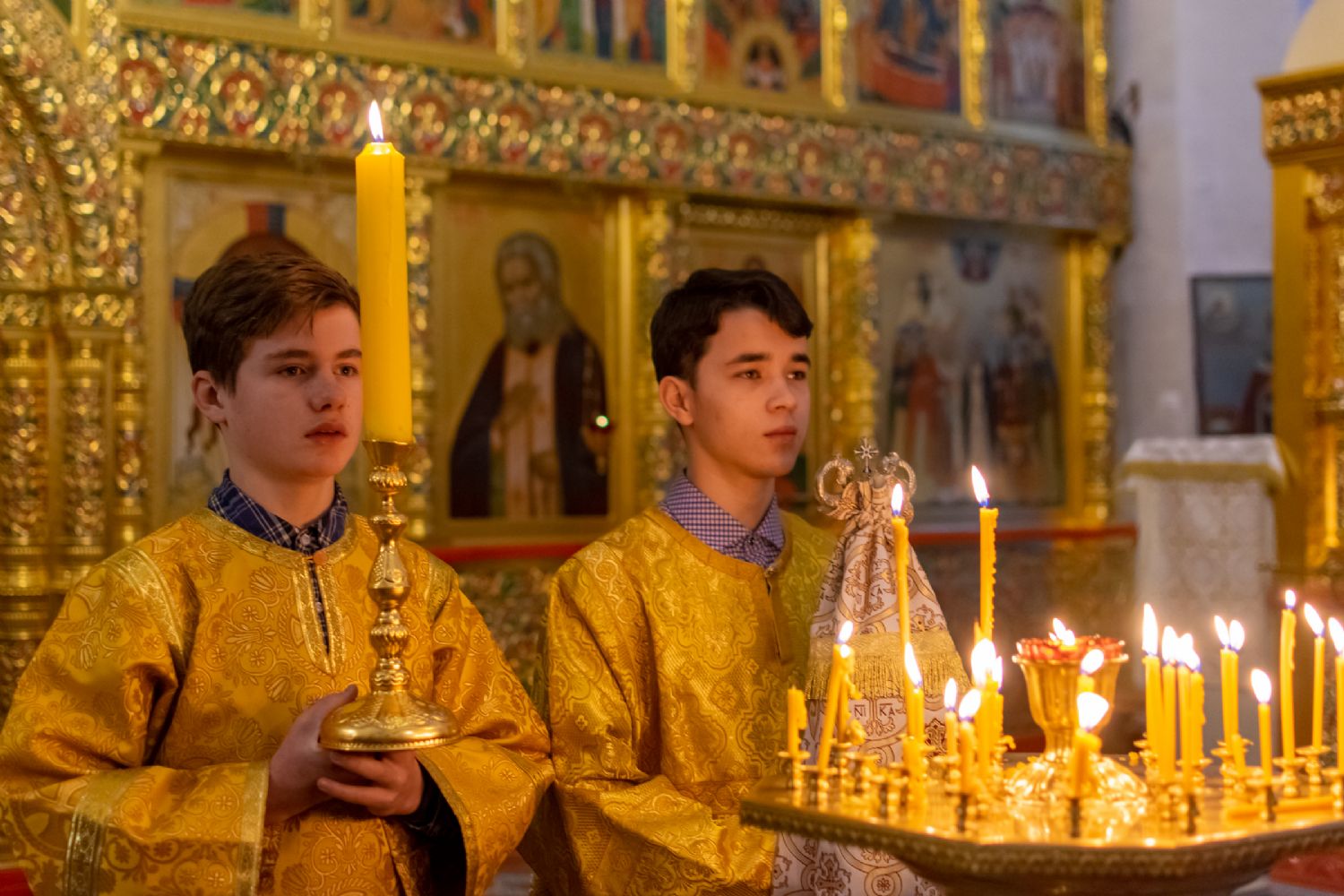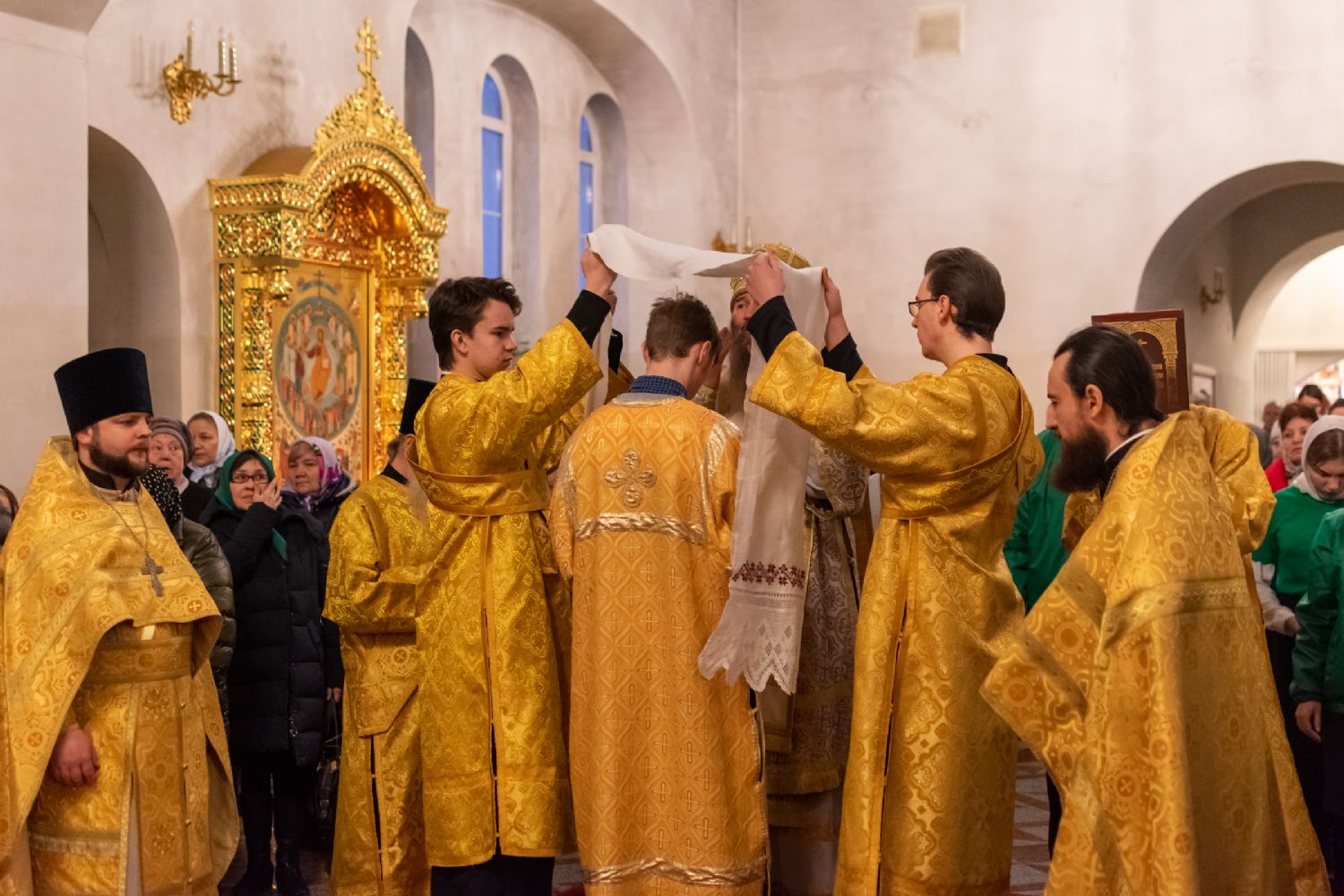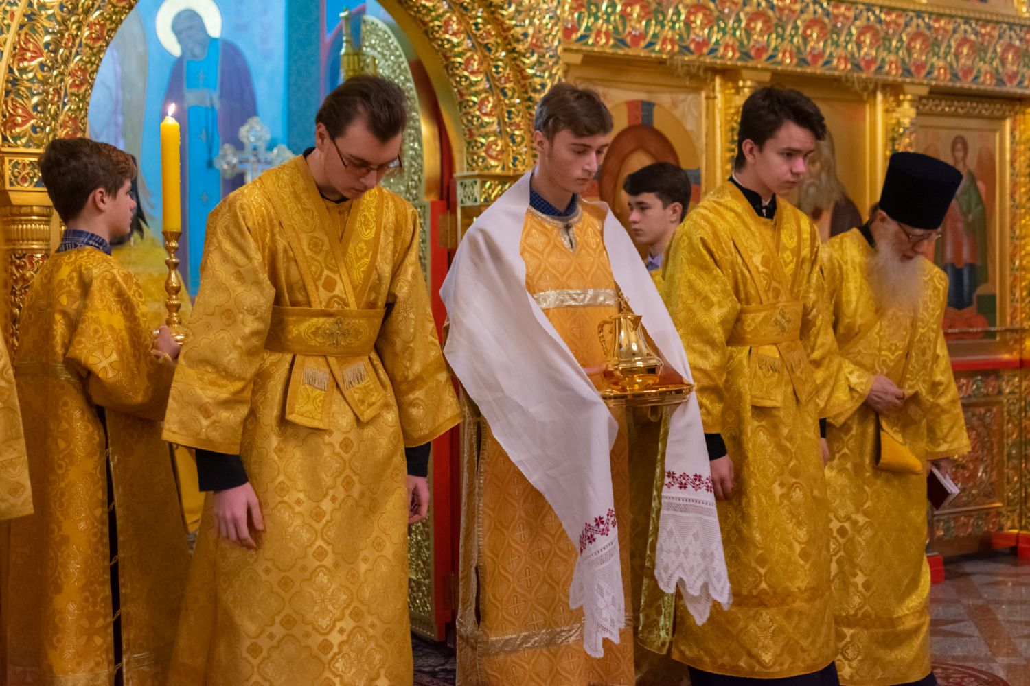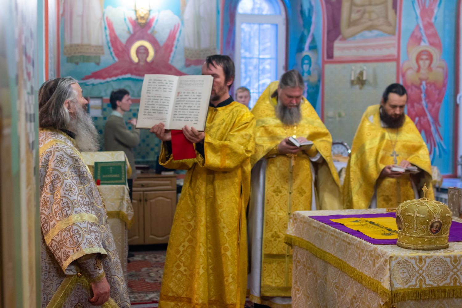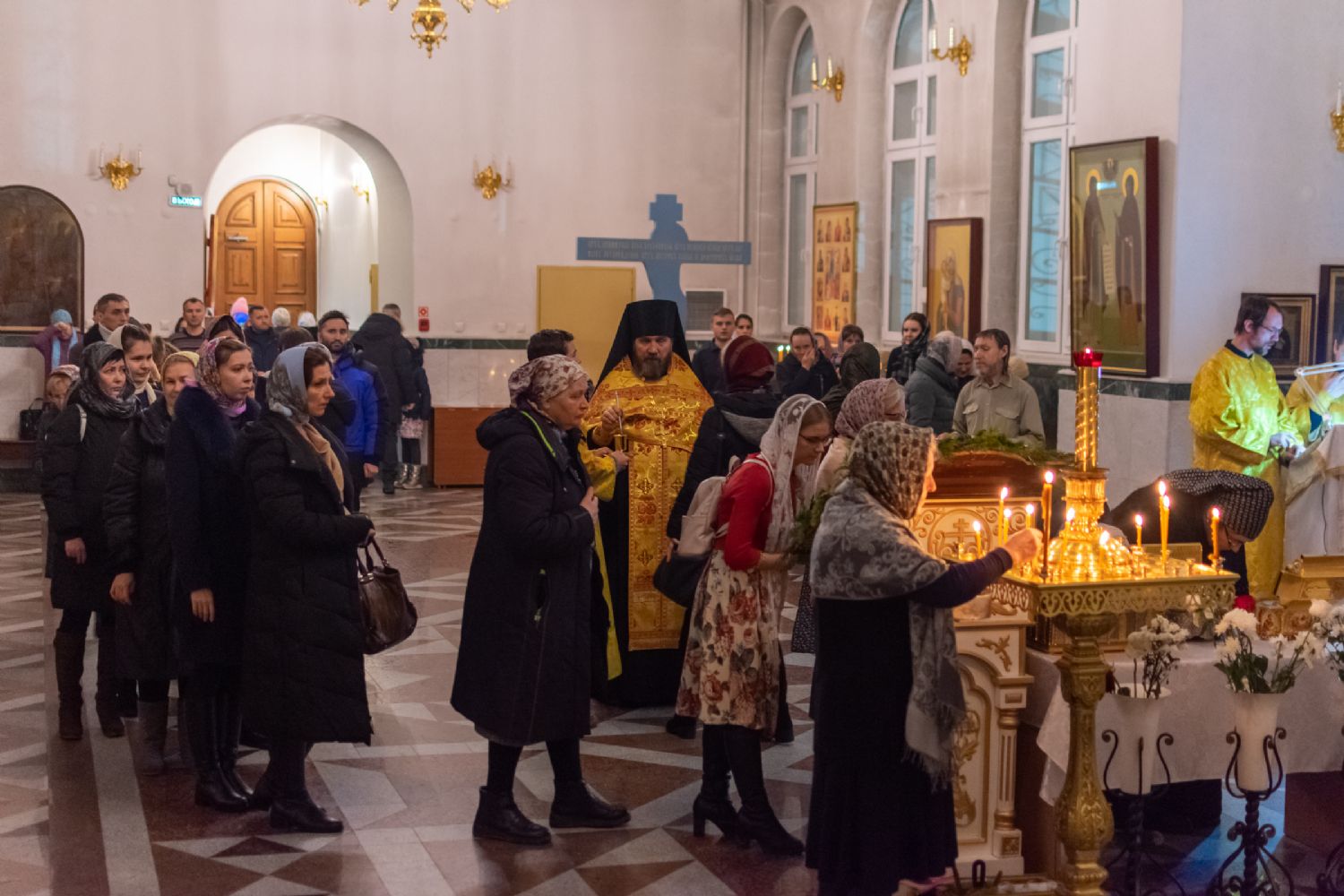 За Всенощным бдением Владыке сослужили секретарь Йошкар-Олинского епархиального управления иеромонах Серафим (Пасанаев), настоятель собора иерей Алексий Кирюшкин, клирики собора иереи Леонид Вылекжанин, Андрей Кончаков, диакон Алексий Кузнецов и клирик храма Рождества Пресвятой Богородицы с. Семеновка протодиакон Михаил Козловский. Песнопения исполнял хор собора.