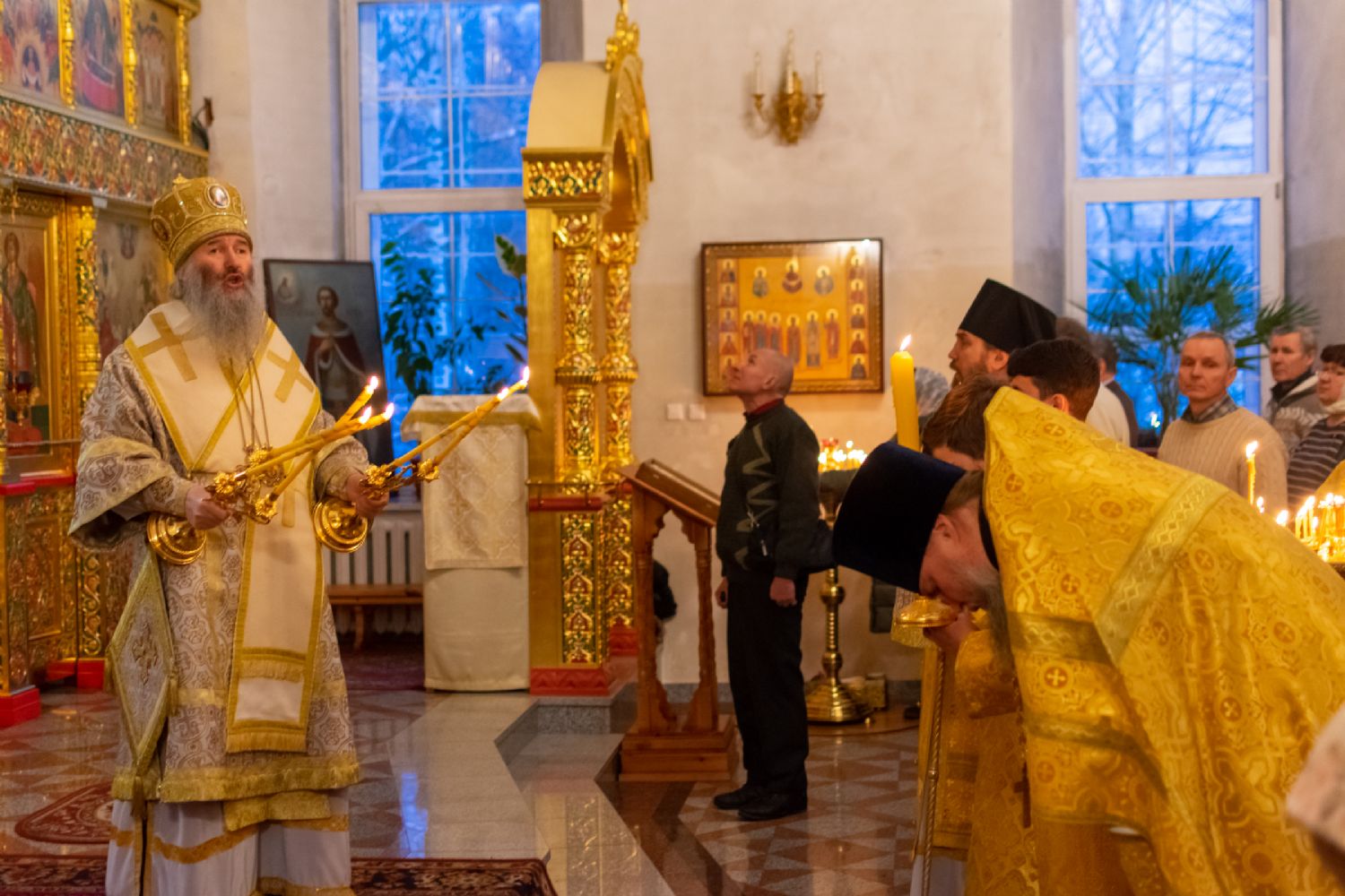 4 января вечером и 5 января утром митрополит Йошкар-Олинский и Марийский Иоанн возглавил Всенощное бдение и Божественную литургию в Воскресенском соборе и храме преподобного Серафима Саровского г. Йошкар-Ола.