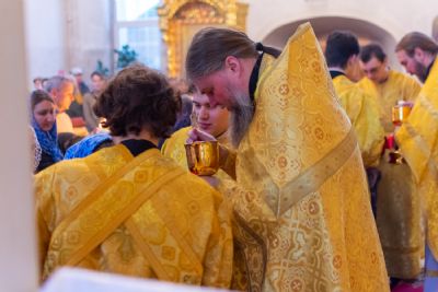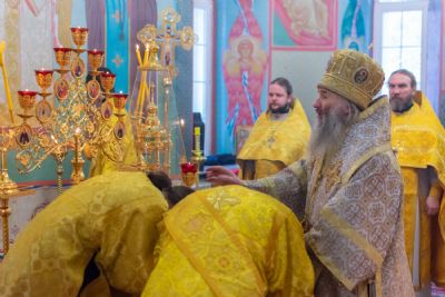 За Литургией митрополиту Иоанну сослужили секретарь Йошкар-Олинского епархиального управления иеромонах Серафим (Пасанаев), настоятель храма протоиерей Александр Бачурин, клирики храма иереи Виктор Умрихин, Николай Бабич, диакон Димитрий Лукьянов и клирик храма Рождества Пресвятой Богородицы с. Семеновка протодиакон Михаил Козловский. Песнопения исполнял хор храма.
