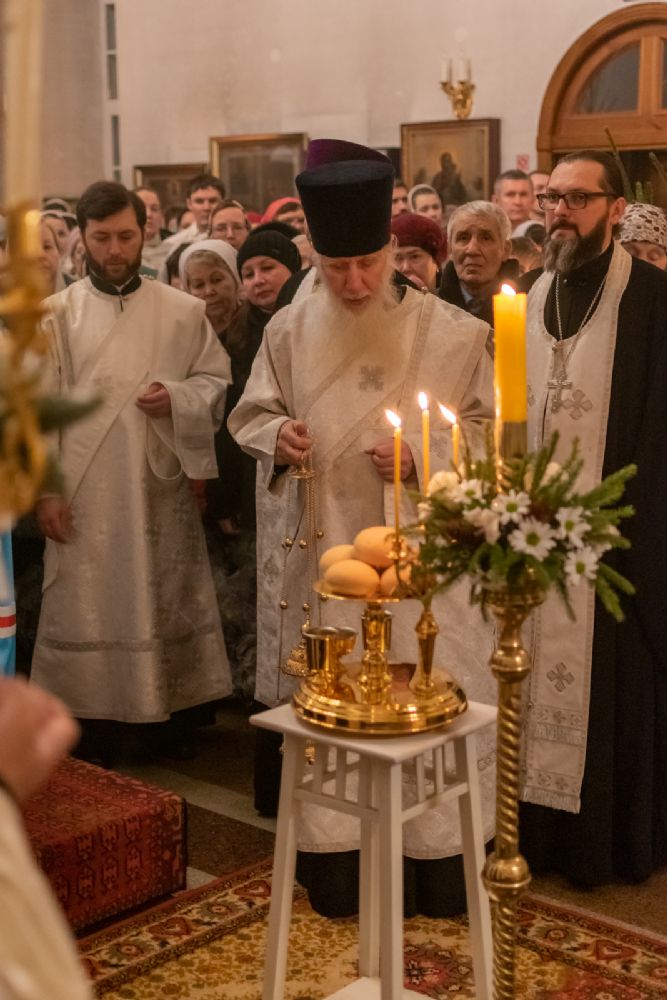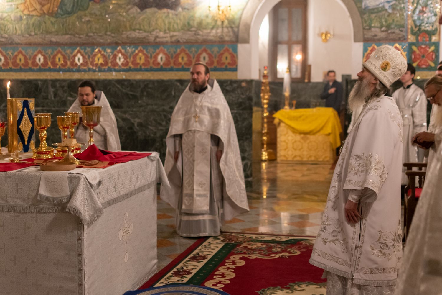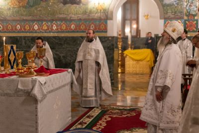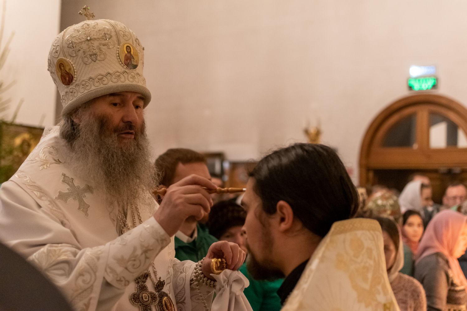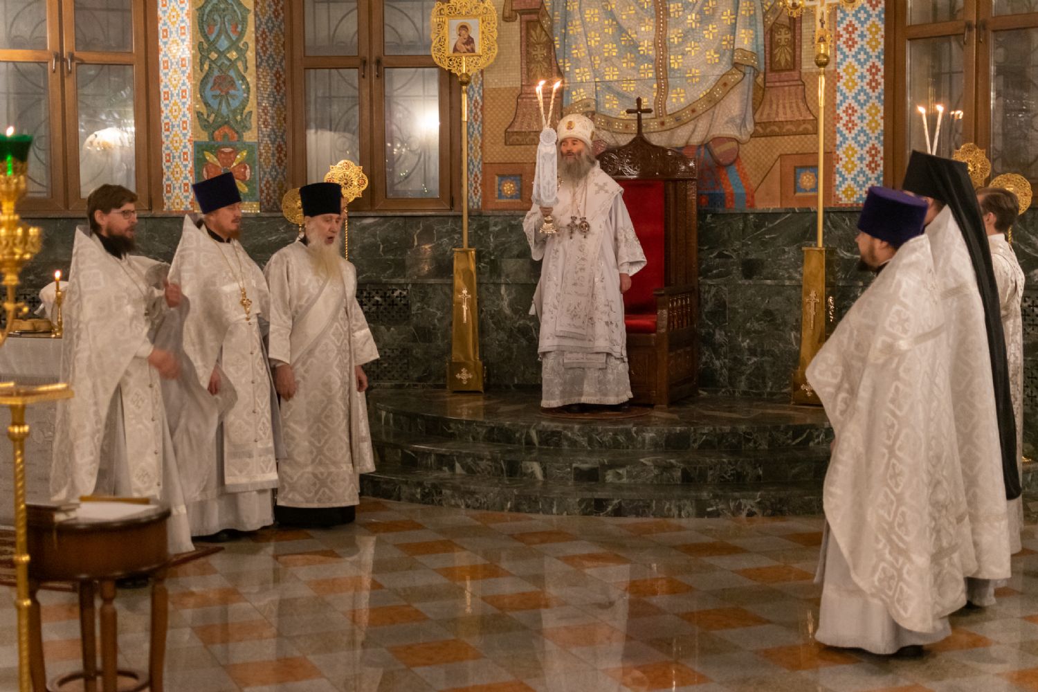 В 2 часа ночи в Благовещенском кафедральном соборе митрополит Иоанн возглавил праздничную утреню и Божественную литургию.