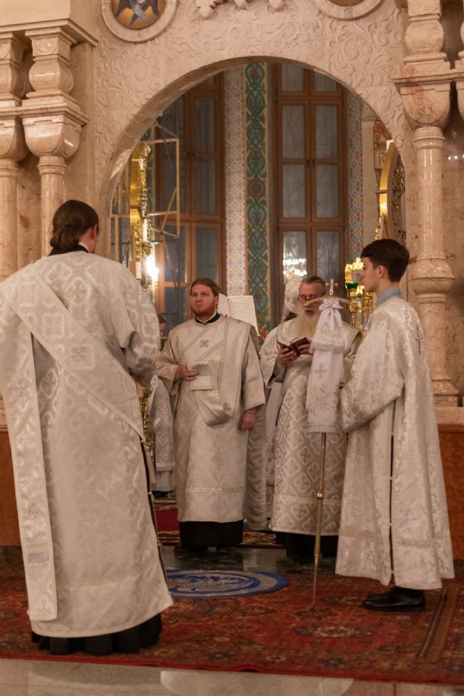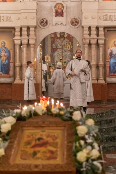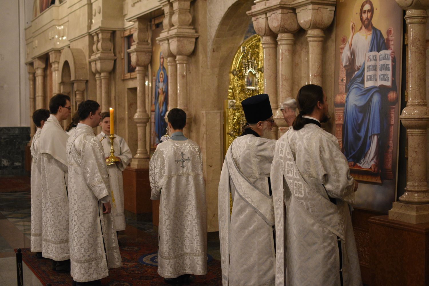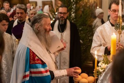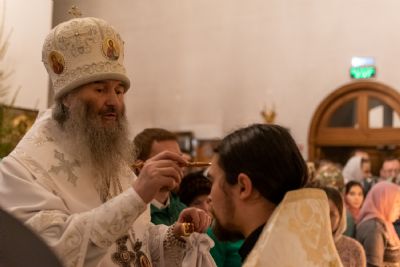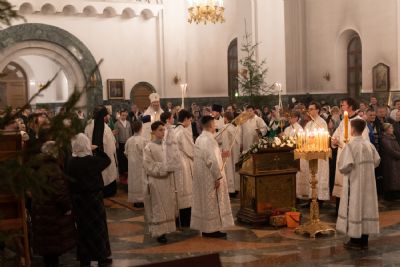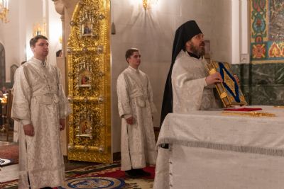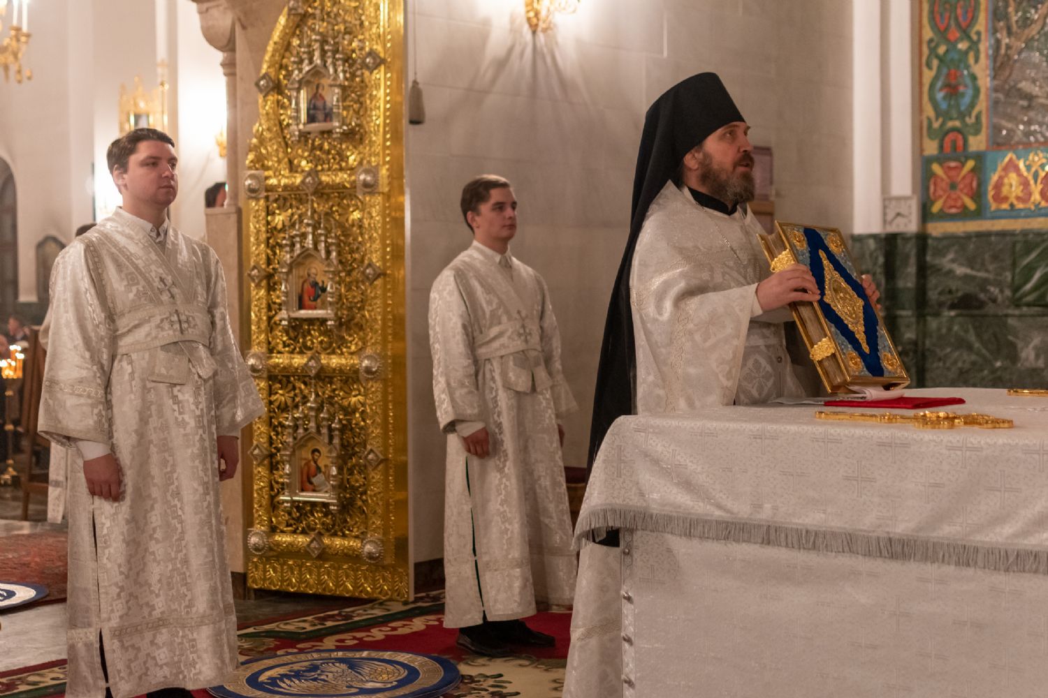 В 2 часа ночи в Благовещенском кафедральном соборе митрополит Иоанн возглавил праздничную утреню и Божественную литургию.