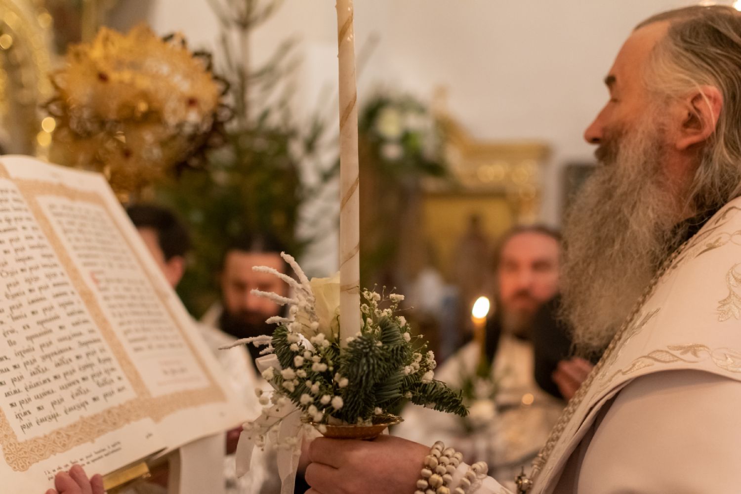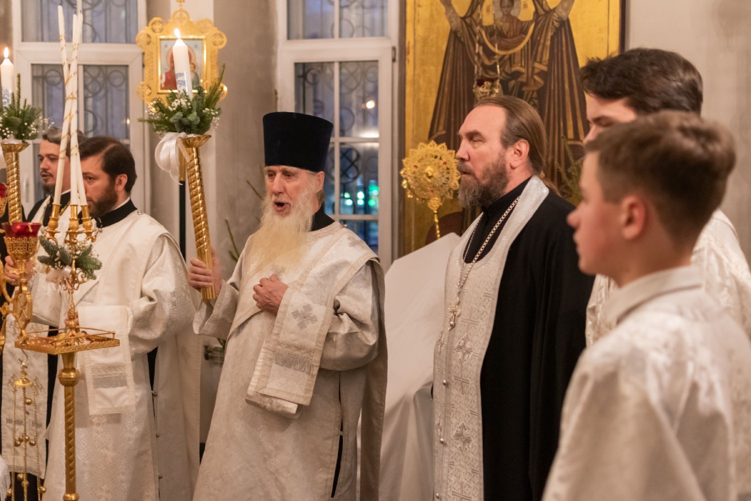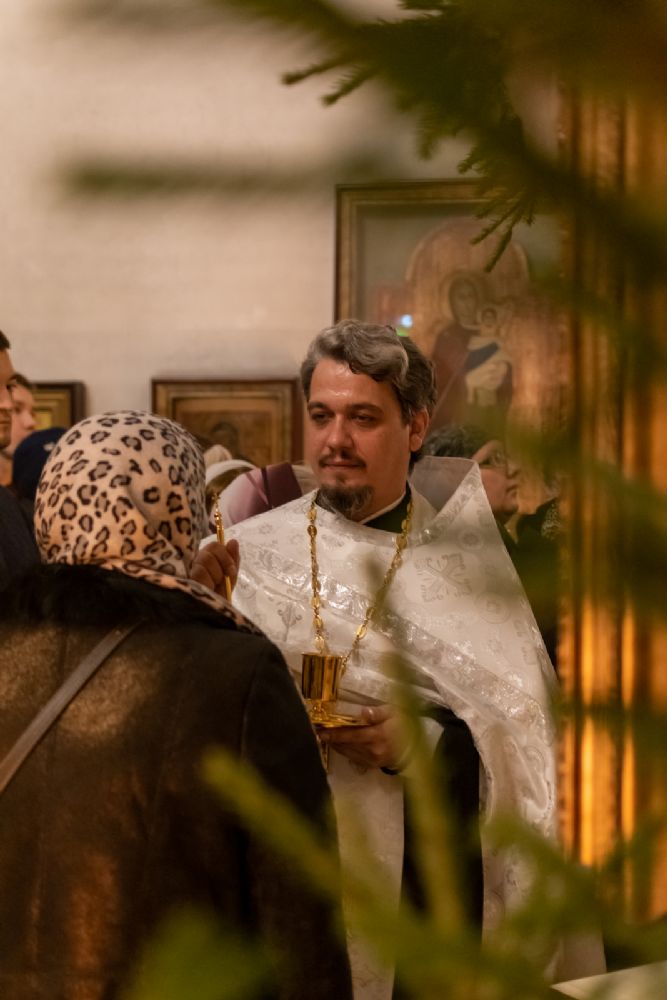 После Литургии священство совершило славление праздника перед иконой Рождества Христова в центре храма.