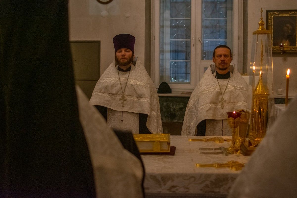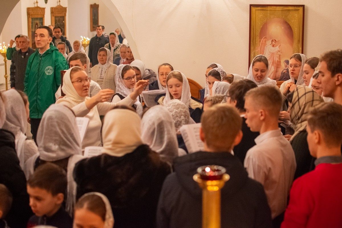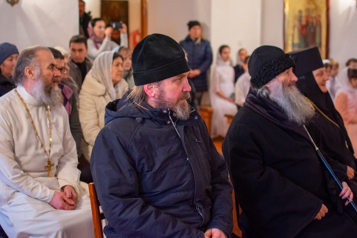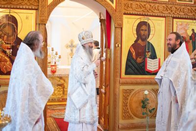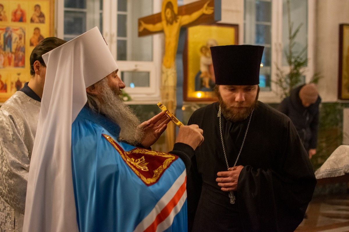 Владыке сослужили секретарь Йошкар-Олинского епархиального управления иеромонах Серафим (Пасанаев), настоятель собора иерей Алексий Кирюшкин, клирики собора иереи Леонид Вылекжанин, Андрей Кочаков, диакон Алексий Кузнецов и клирик храма Рождества Пресвятой Богородицы с. Семеновка протодиакон Михаил Козловский. Песнопения исполняли хор собора.
