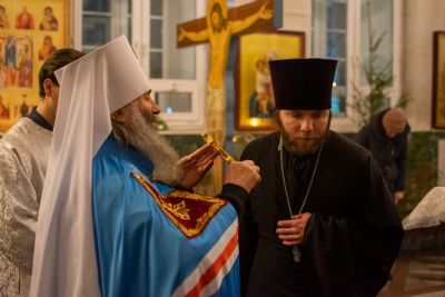 Накануне дня памяти святого архидиакона Стефана митрополит Йошкар-Олинский и Марийский Иоанн возглавил вечернее богослужение в Воскресенском соборе г. Йошкар-Ола.