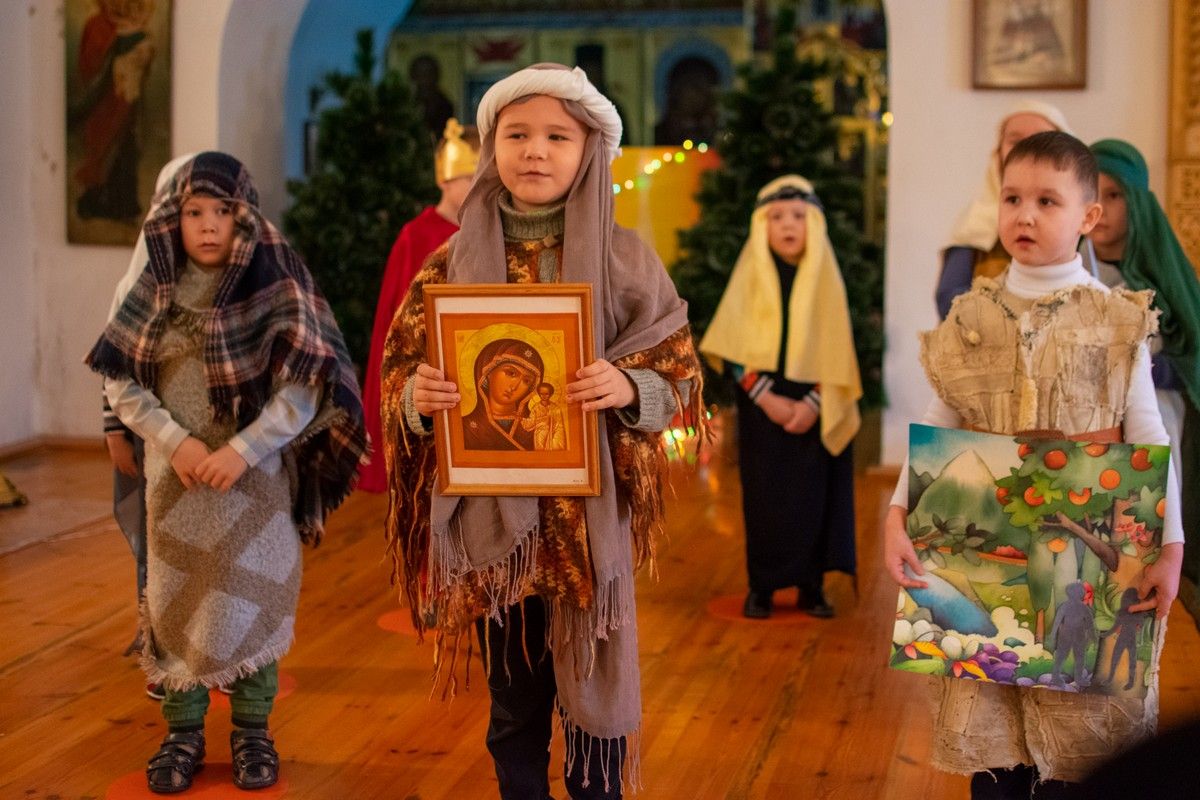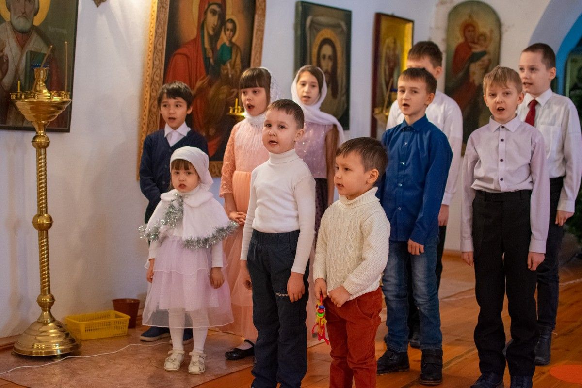 После богослужения воспитанники воскресной школы при монастыре показали гостям рождественское представление.