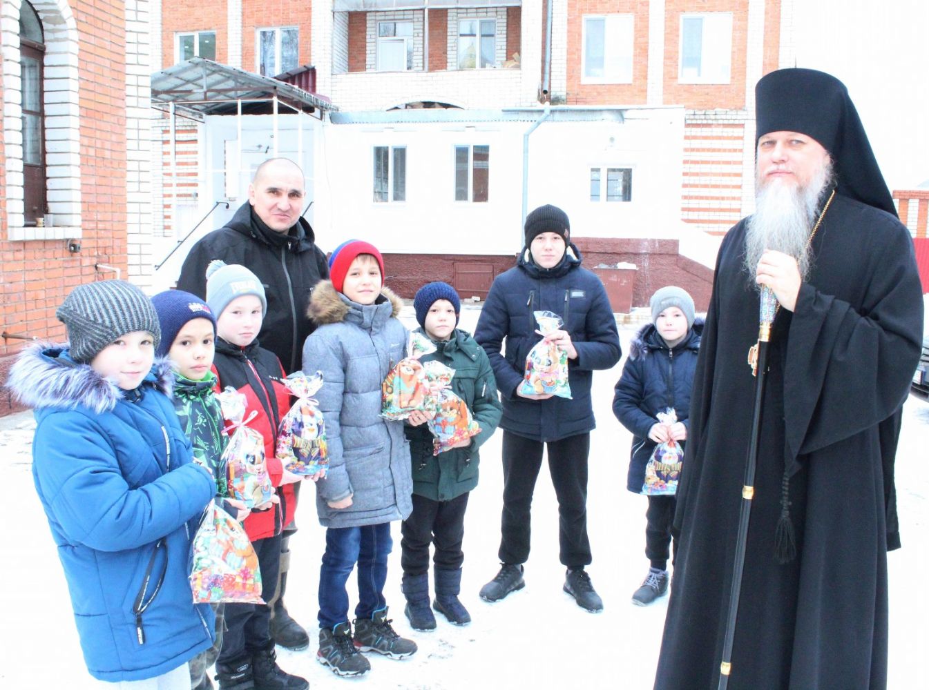 Перед выездом на соревнования борцы Помарской СОШ пришли на благословение к епископу Волжскому и Сернурскому Феофану. Владыка Феофан побеседовал с ребятами, подарил рождественские подарки и преподал своё архиерейское благословение.