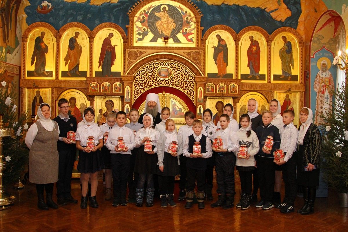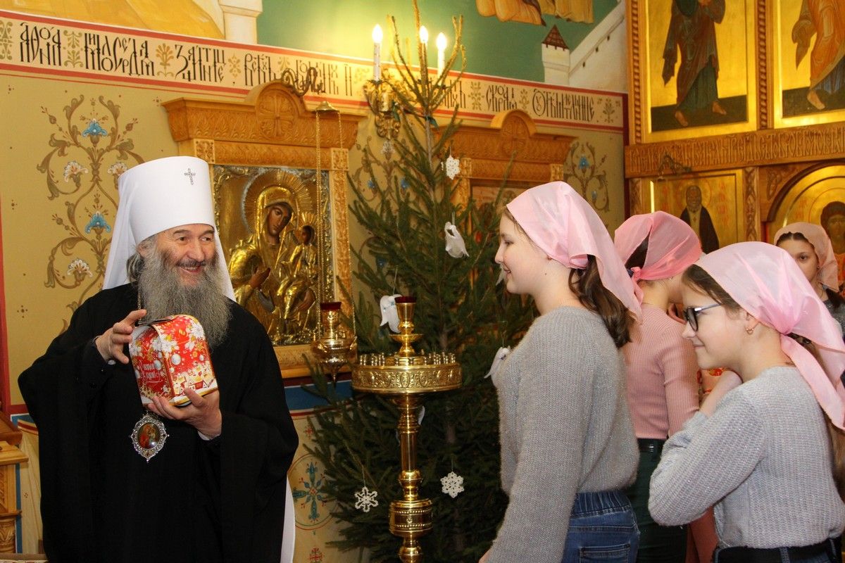 Дети и взрослые делились своей радостью о Рождшемся Богомладенце с Владыкой: пели рождественские песнопения, колядки, песни и читали стихи. А Владыка каждого гостя одарил сладким подарком.