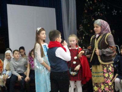 Начало торжеству положило совместное исполнение Рождественского тропаря. Участниками концерта по уже сложившейся традиции стали ученики воскресной школы, которые со своими учителями Ириной Леонидовной Остапенко и Татьяной Анатольевной Макаренко подготовили интересную, яркую программу, в основе которой была инсценировка сказки Андерсена «Снежная королева», где раскрыли духовный смысл праздника. Маленькая Герда с благословлением бабушки отправляется в длительный и опасный путь далеко на север. Она любит брата и идет спасать его. Ее духовная чистота стяжает ей помощь всех, кто встречается на ее пути и оказывает облагораживающее воздействие на них.