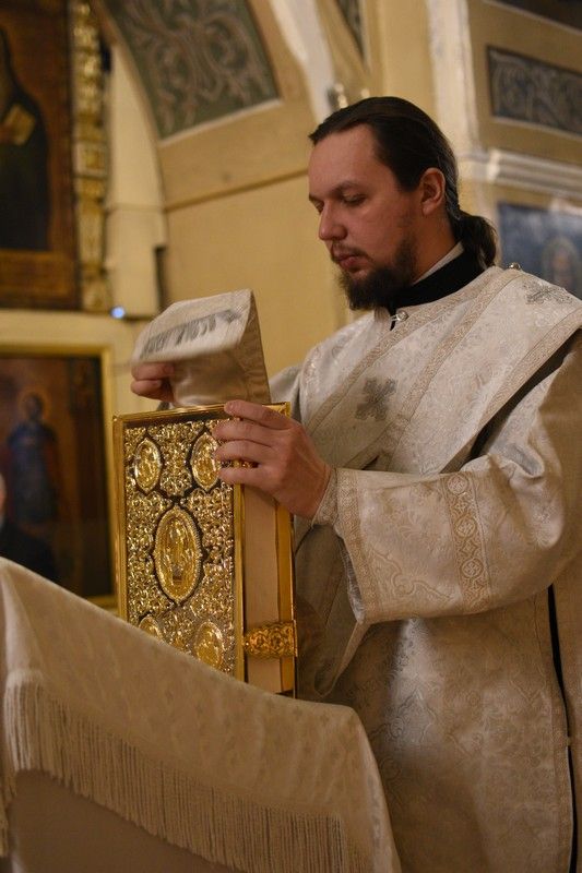Владыке сослужили: настоятель храма иерей Александр Лоскутов, клирики храма иереи Никита Смирнов и Евгений Симаков, диаконы Артемий Бобоч и Вячеслав Булычев.