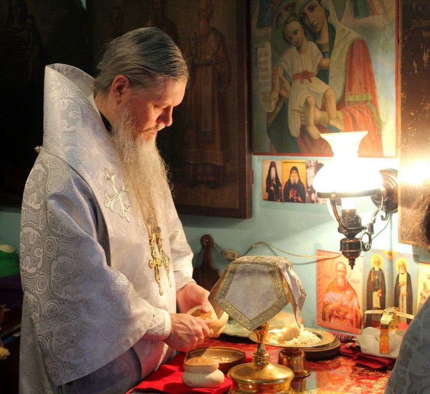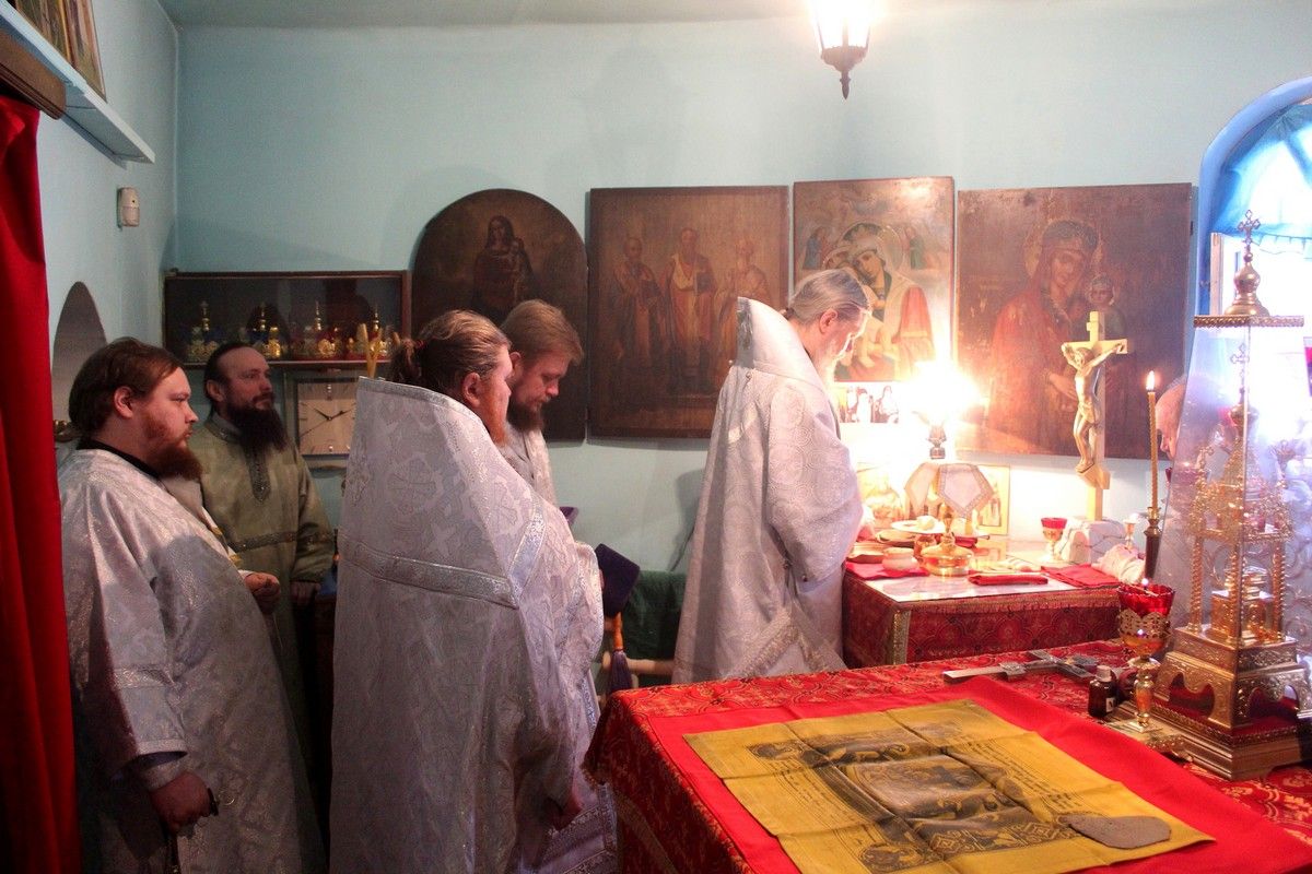 Владыке сослужили: настоятель храма протоиерей Николай Полежайкин, настоятель храма Пресвятой Троицы с. Мамсинер протоиерей Лев Федотов и клирик Никольского кафедрального собора г. Волжска диакон Иоанн Захаров.