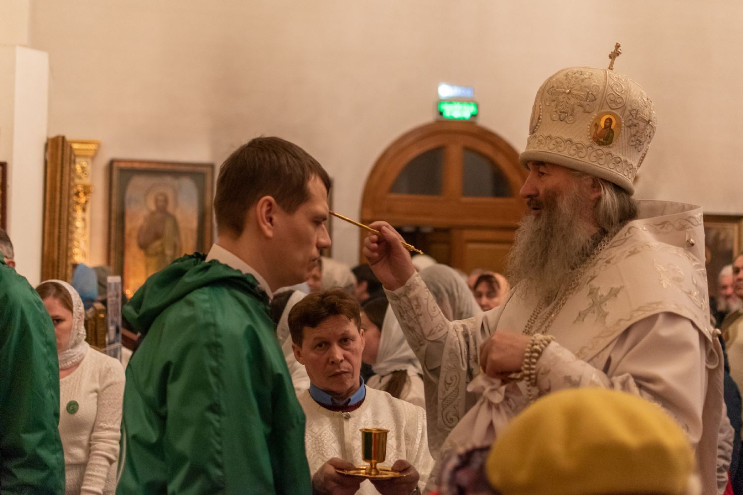 После полиелея помазание святым елеем совершали митрополит Иоанн и иерей Никита Смирнов.