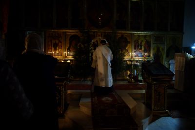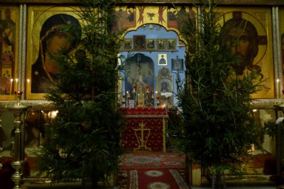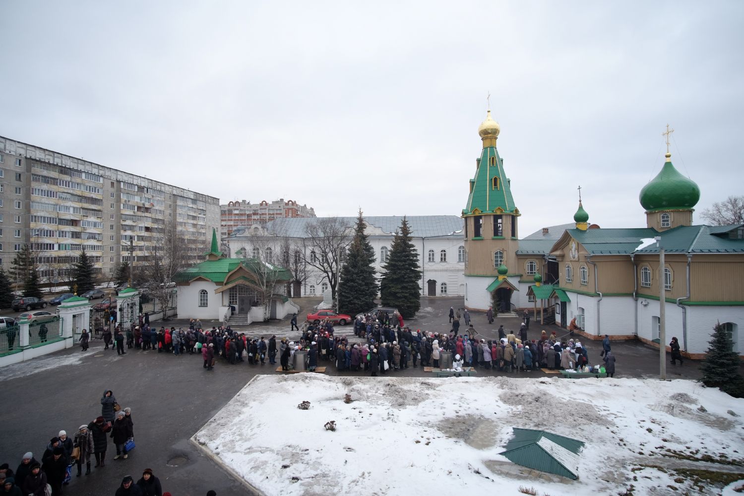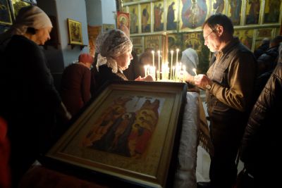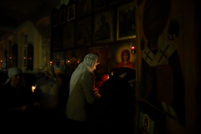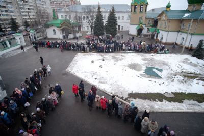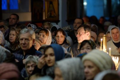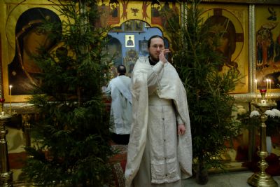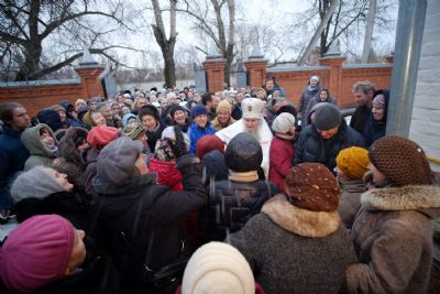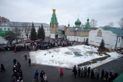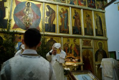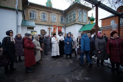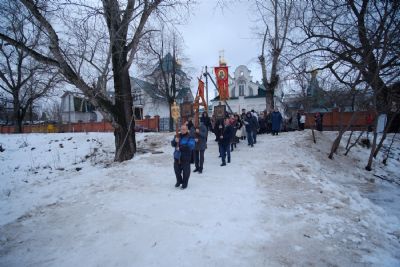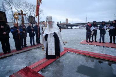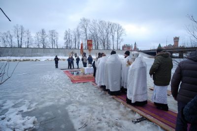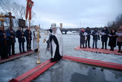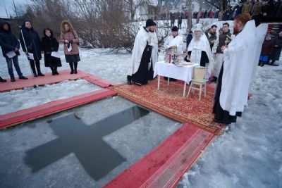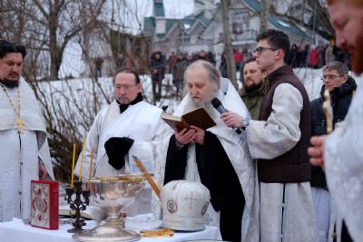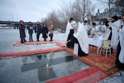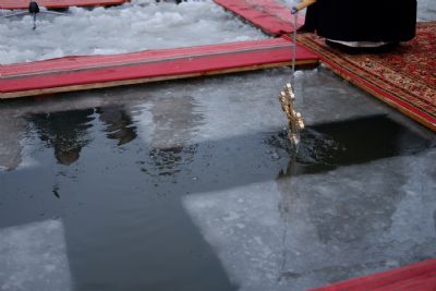 По окончании ранней Божественной литургии был совершен крестный ход на Иордань, заранее вырубленную в речном льду в форме креста.