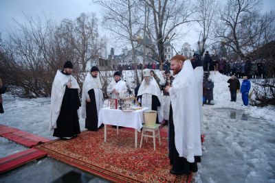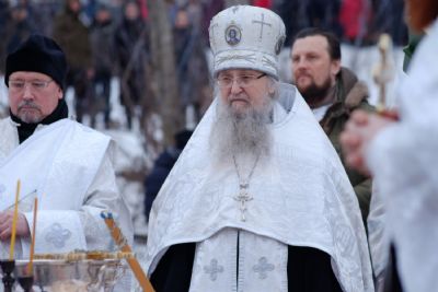 19 января в праздник Богоявления в Йошкар-Оле совершили чин великого освящения воды на реке Малая Кокшага. Богослужение возглавил настоятель собора Вознесения Господня митрофорный протоиерей Евгений Кутырев в сослужении клириков храма.