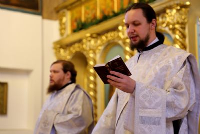 Накануне вечером епископ Феофан в сослужении секретаря Епархиального управления протоиерея Александра Михайлова и духовенства собора совершили Всенощное бдение.