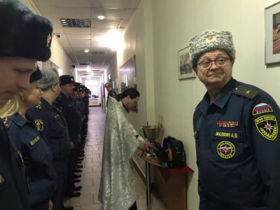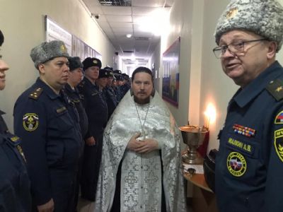 27 января, в день отдания праздника Богоявления Господня, клирик храма Рождества Пресвятой Богородицы с. Семеновка иерей Димитрий Иванов совершил водосвятный молебен в главном управлении Министерства по чрезвычайным ситуациям.