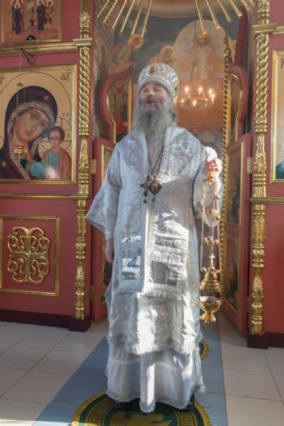 Владыке сослужили клирики храма Рождества Пресвятой Богородицы с. Семеновка иерей Димитрий Иванов и протодиакон Михаил Козловский. Песнопения исполнял хор сестер милосердия под руководством регента Елены Яровиковой.