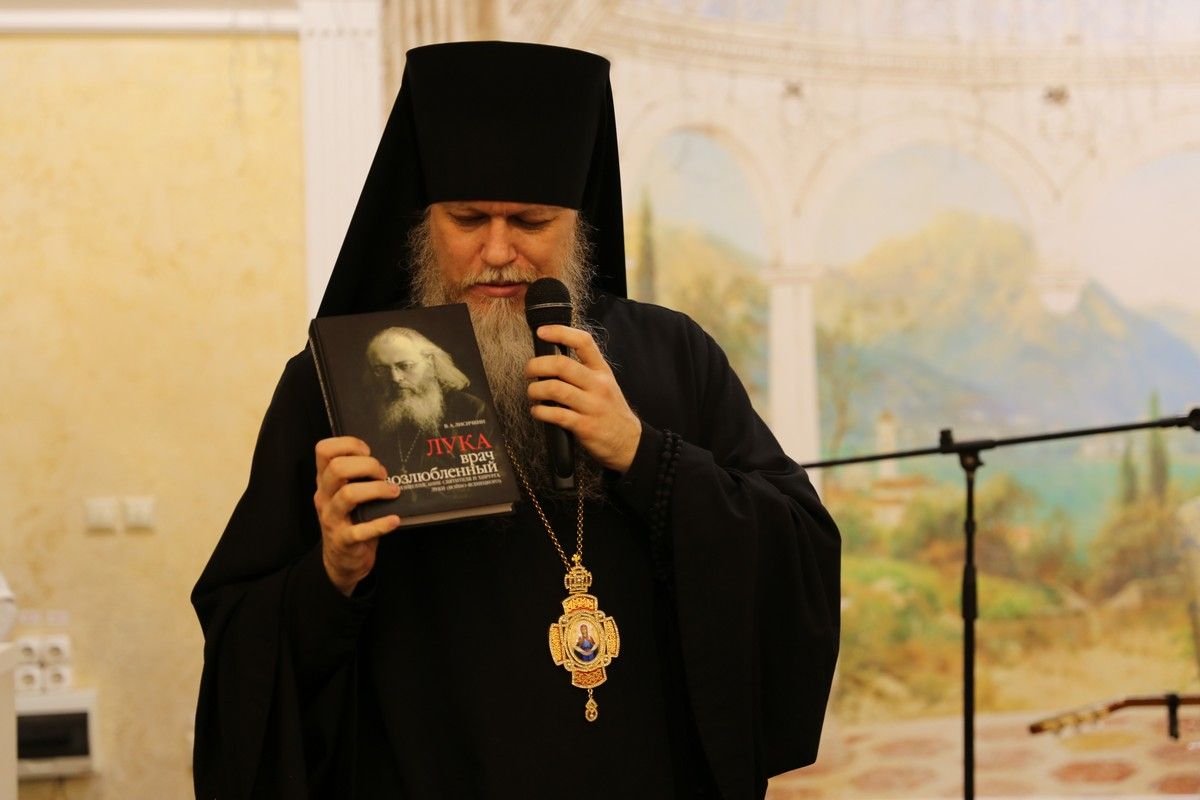 После выступления, владыка Феофан поздравил всех присутствующих с продолжающемся праздником Сретения Господня и праздником иконы Божией Матери «Взыскание погибших».