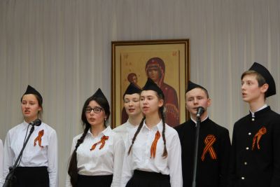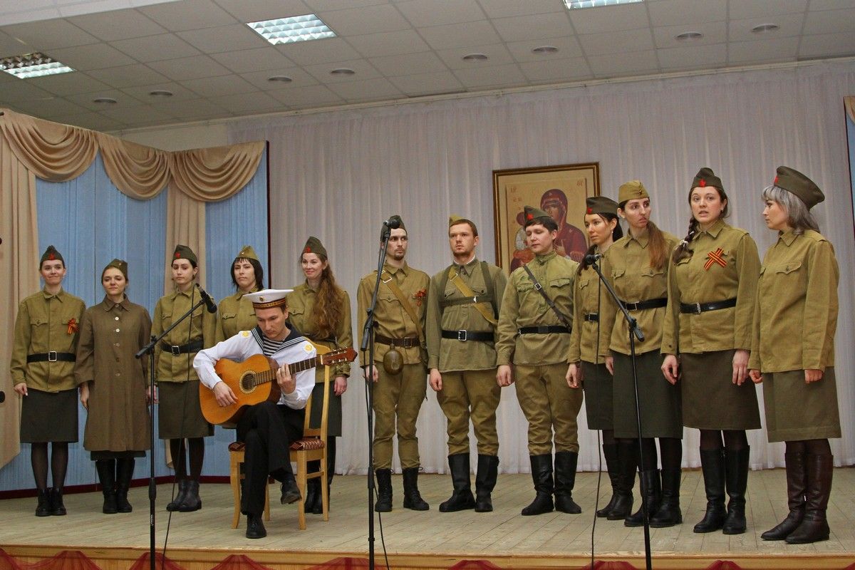Первой номинацией стала музыкальная визитка – ребята исполнили песни, представляющие их хоры, а члены жюри выставили им оценки по пятибалльной системе. В паузе перед зрителями выступил молодежный хор храма Рождества Христова г. Йошкар-Олы с военной песней, создав тем самым патриотическое настроение к следующему этапу конкурса.