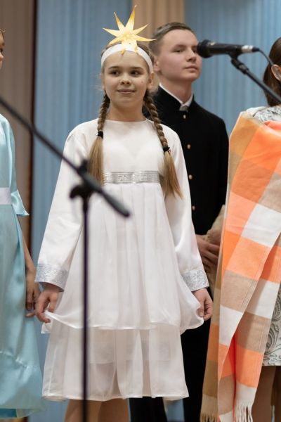 Теперь – переход от военной тематики к миру и покою. Номинация «колыбельная песня» выбрана не случайно: молодые певчие в будущем станут мамами и папами и им пригодятся навыки укачивания младенцев. Это наглядно продемонстрировали ребята из Доброхора. А вот хористы Татьянинского храма посвятили свою колыбельную доброй и трудолюбивой маме, которая устает за день со своими многочисленными детишками. «Благовест» порадовал зрителей целым мини-спектаклем с костюмами и декорациями по песне о звёздах из фильма «Про Красную Шапочку».