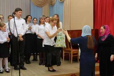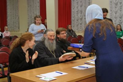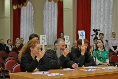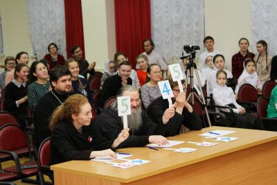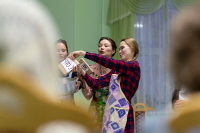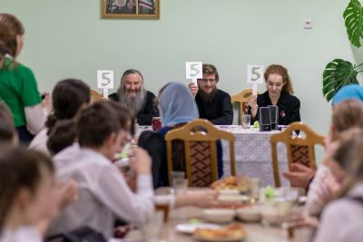 После этого конкурс переместился из актового зала в трапезную Православного центра. Здесь за чаепитием прошла заключительная номинация – кулинарные песни, исполненные с задором и добрым юмором. Примечательно, что именно в этой номинации все члены жюри оценили выступления всех четырех команд высшим баллом.