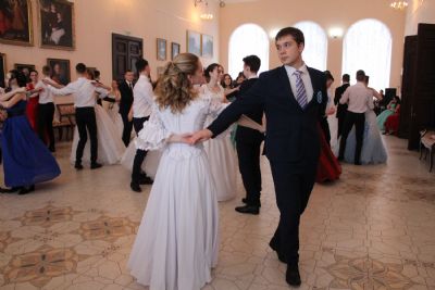 Ведущие объявляют первый танец - «полонез». И все присутствующие переносятся в то далекое время, когда строго выполнялся бальный церемониал. Участники преображаются - кавалеры выпрямляются в струнку и галантно кланяются, девушки становятся легкими, изящными и уверенными, чувствуя поддержку своих внимательных партнеров. Грациозно и торжественно участники идут по залу.