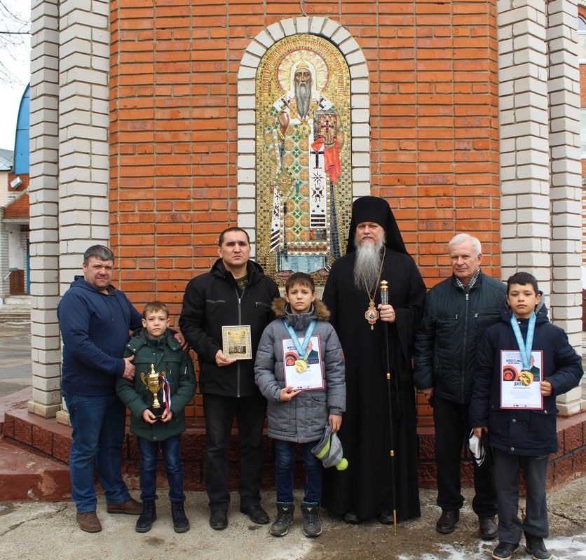 Вернувшись домой, спортсмены со своими тренерами Александром Серяковым и Николаем Козловым пришли к Владыке поделиться радостью от побед. Епископ Феофан поздравил юных борцов с высокими результатами на ковре и пожелал им помощи Божией одерживать не только земные победы, но и духовные - над своими собственными страстями, чтобы быть настоящими воинами Христовыми.