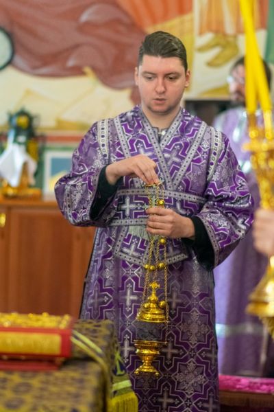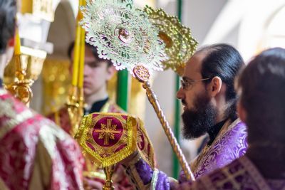 За Литургией Владыке сослужили клирик Вознесенского собора г. Йошкар-Олы иерей Иоанн Кристев и клирик храма Рождества Пресвятой Богородицы с. Семеновка протодиакон Михаил Козловский. Песнопения исполнял хор Троицкого храма под руководством регента Анны Ярошевич. За богослужением молились и помогали Православные добровольцы.