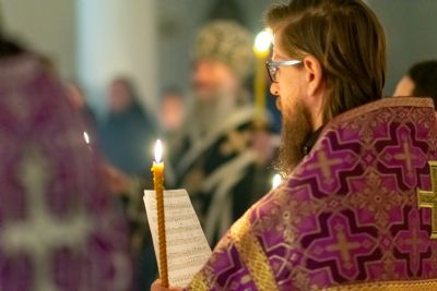 Владыке сослужили ключарь собора протоиерей Сергий Поглазов, клирики иереи Никифор Захаров, Артемий Промович, Евгений Самойлов, диаконы Андрей Дружинин, Игорь Коваль и клирик храма Рождества Пресвятой Богородицы с. Семеновка протодиакон Михаил Козловский. Песнопения исполнял детско-юношеский хор «Благовест» под руководством регента Татьяны Черновой.