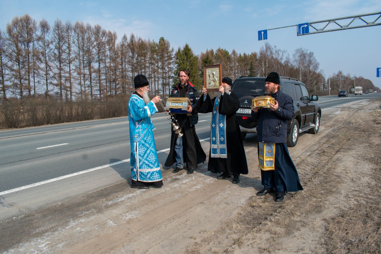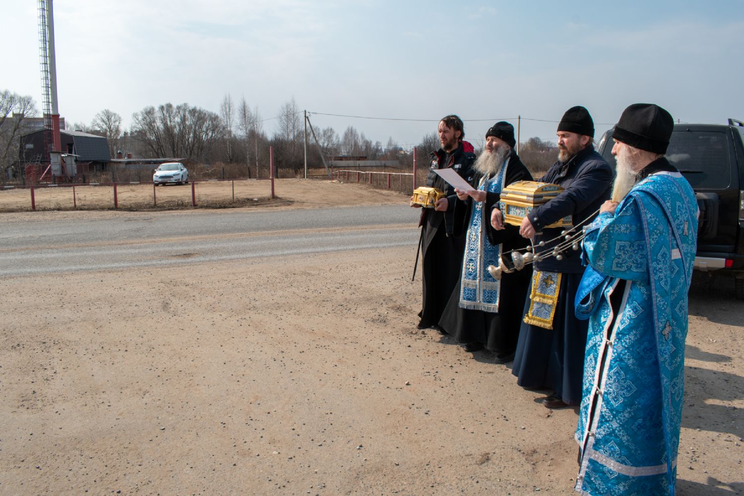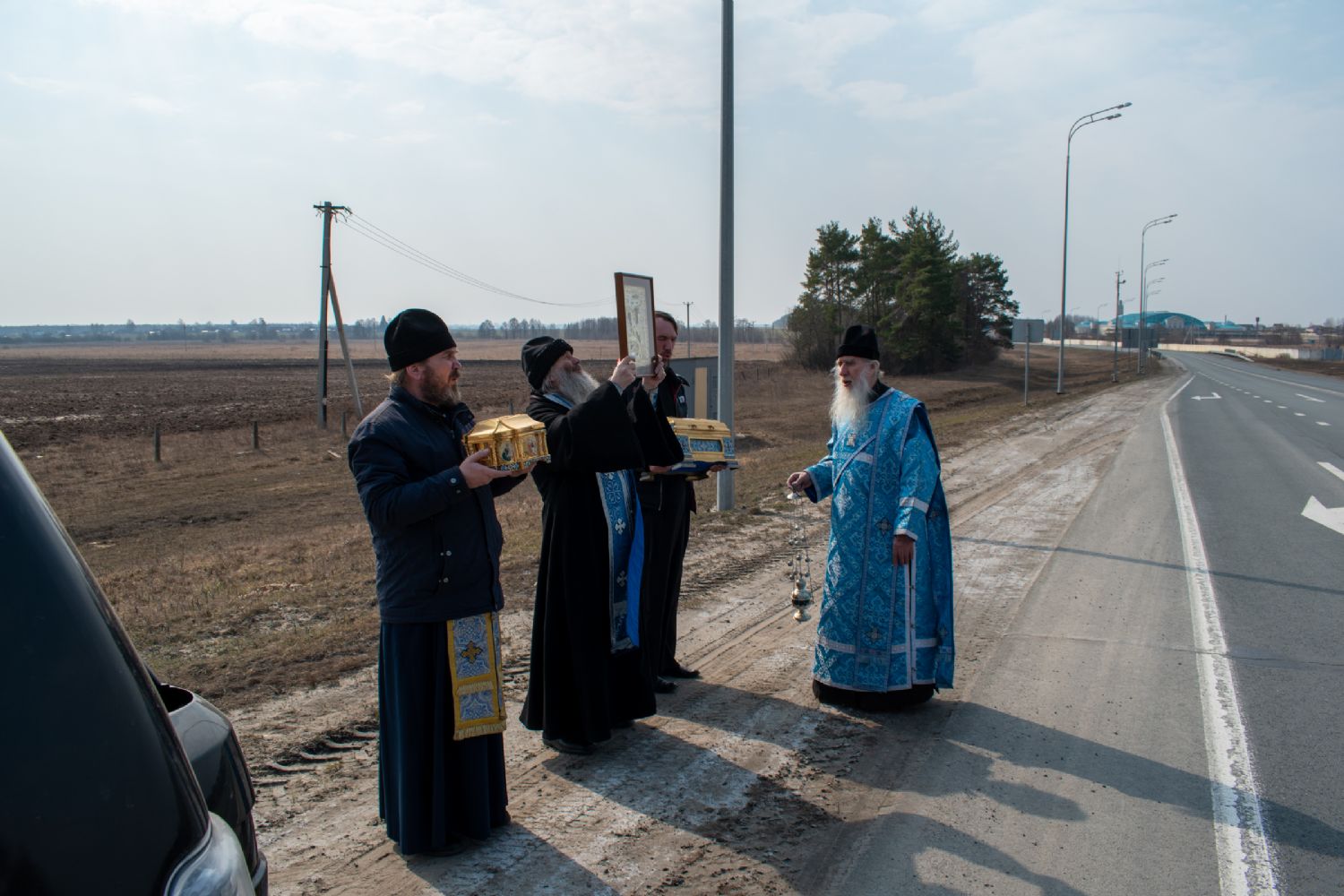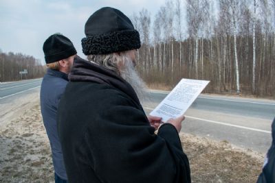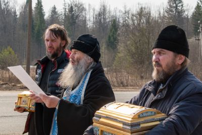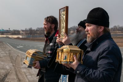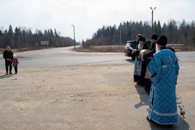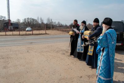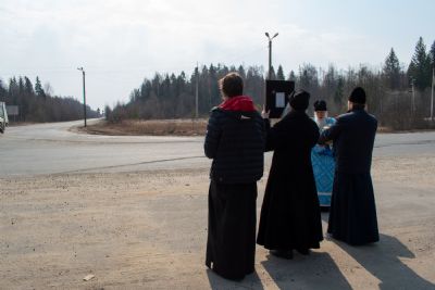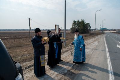 На перекрестках дорог Владыка выходил из машины и с молитвой осенял местность на четыре стороны иконой Пресвятой Богородицы. Закончен молебен был в домовом храме иконы Божией Матери «Троеручица» с коленопреклоненным чтением молитвы во время вредоносного поветрия.