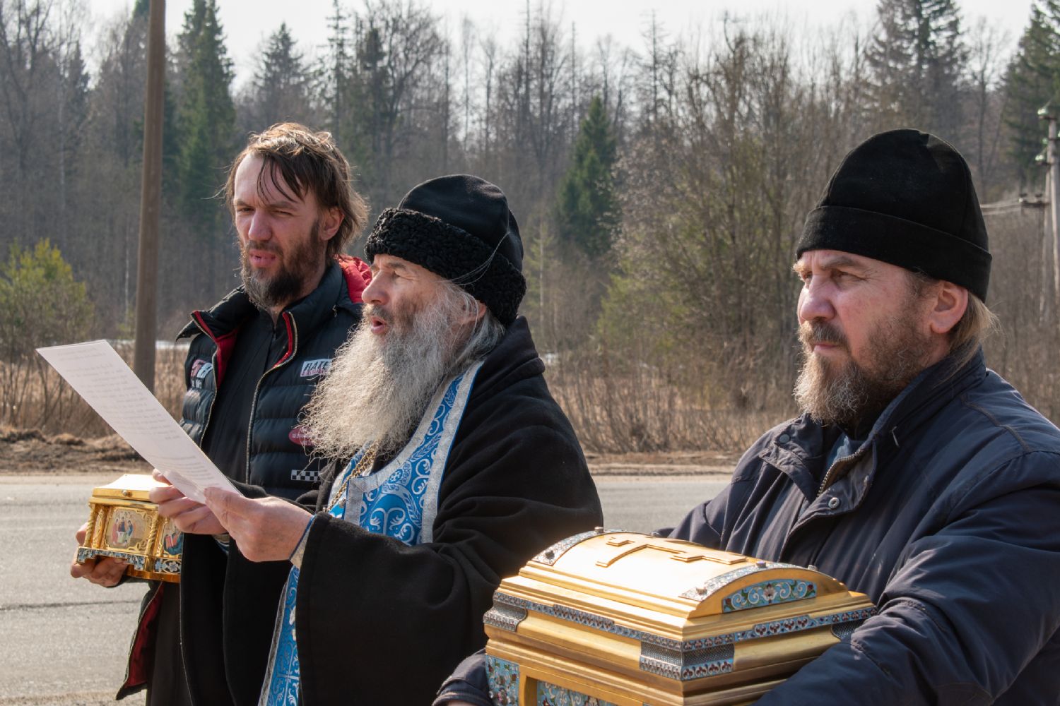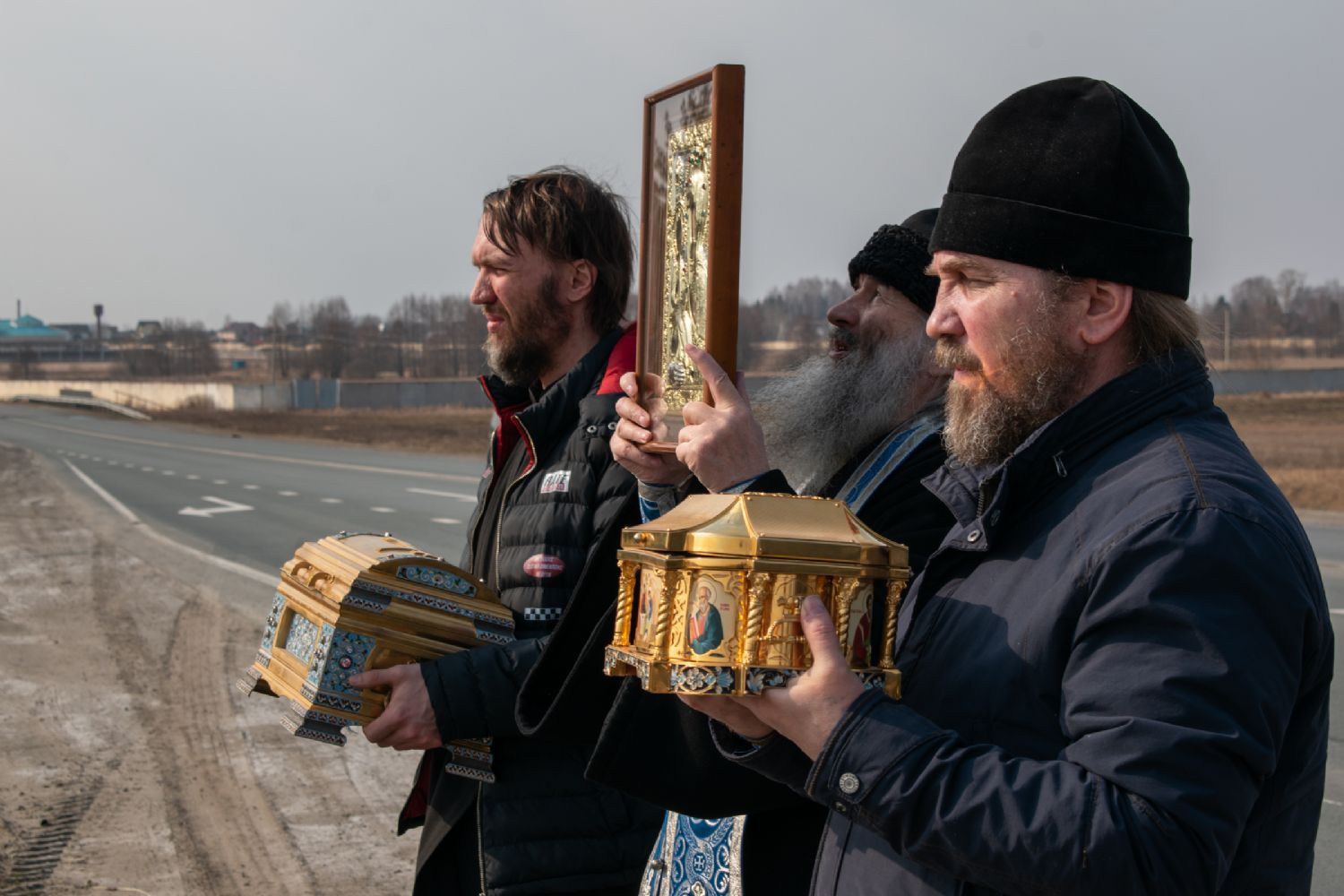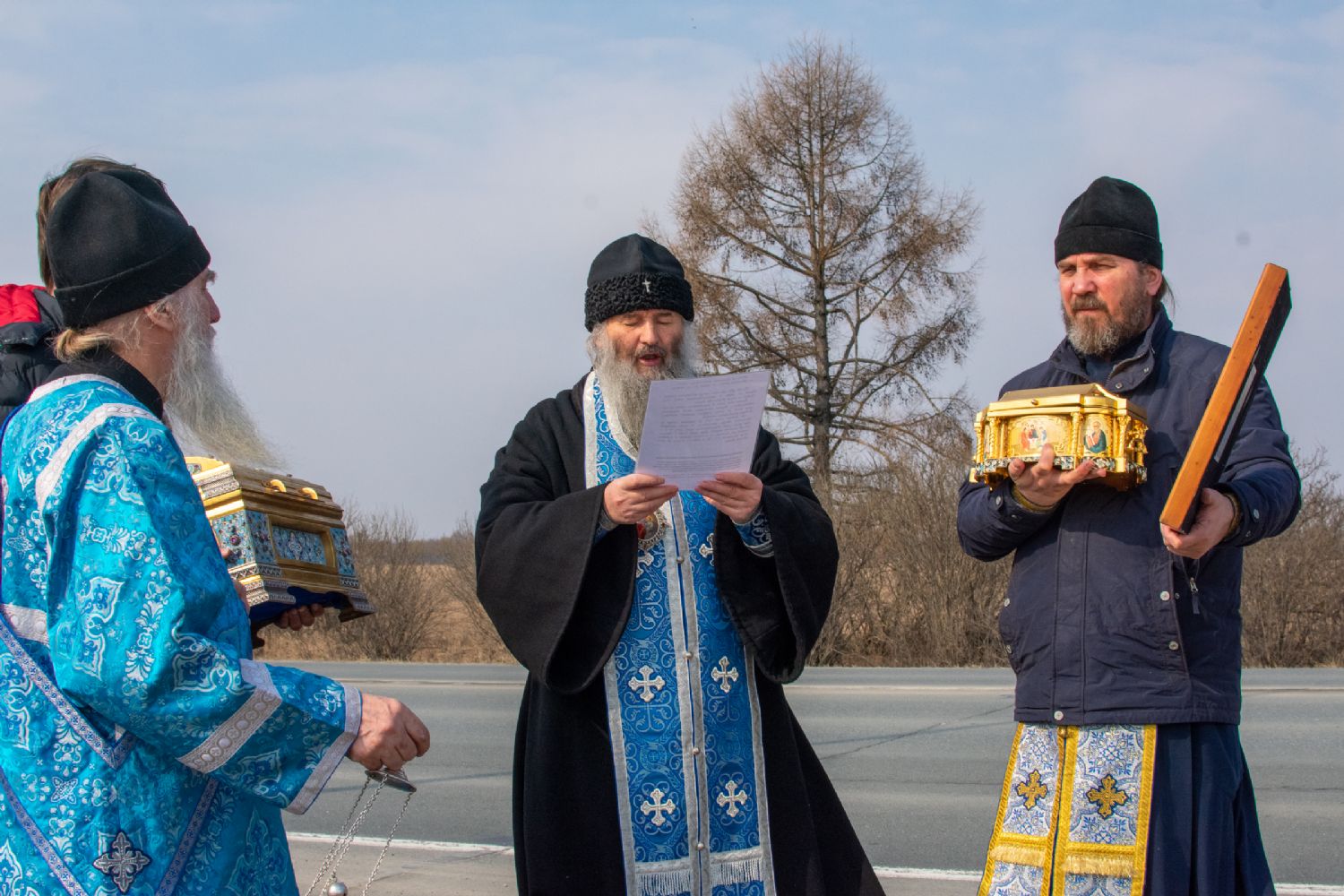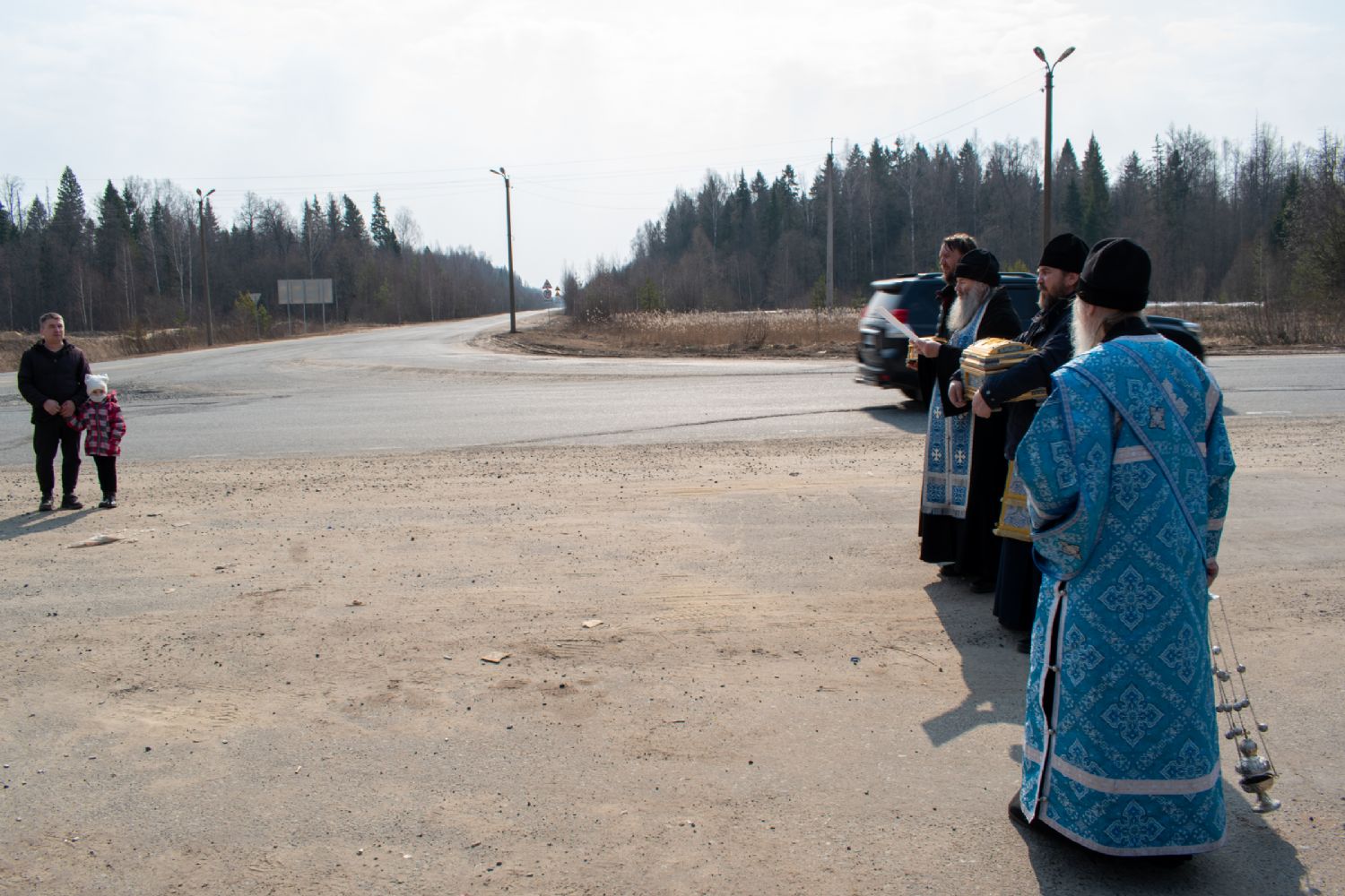 На перекрестках дорог Владыка выходил из машины и с молитвой осенял местность на четыре стороны иконой Пресвятой Богородицы. Закончен молебен был в домовом храме иконы Божией Матери «Троеручица» с коленопреклоненным чтением молитвы во время вредоносного поветрия.