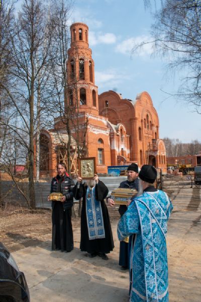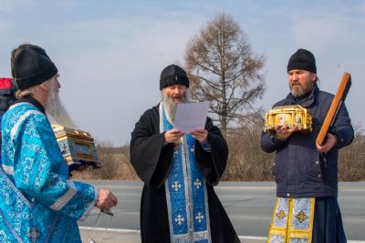 Митрополит Иоанн начал молебен в домовом храме Йошкар-Олинского епархиального управления, затем на автомобиле объехал вокруг города Йошкар-Олы по объездной дороге со святынями: иконой Божией Матери «Троеручица», ковчегами с частицей ризы Пресвятой Богородицы и мощей Блаженной Матроны Московской.