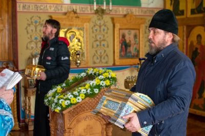Владыке сослужили секретарь Йошкар-Олинского епархиального управления иеромонах Серафим (Пасанаев) и клирик храма Рождества Пресвятой Богородицы с. Семеновка протодиакон Михаил Козловский. Песнопения исполнял детско-юношеский хор «Благовест» под руководством регента Татьяны Черновой.