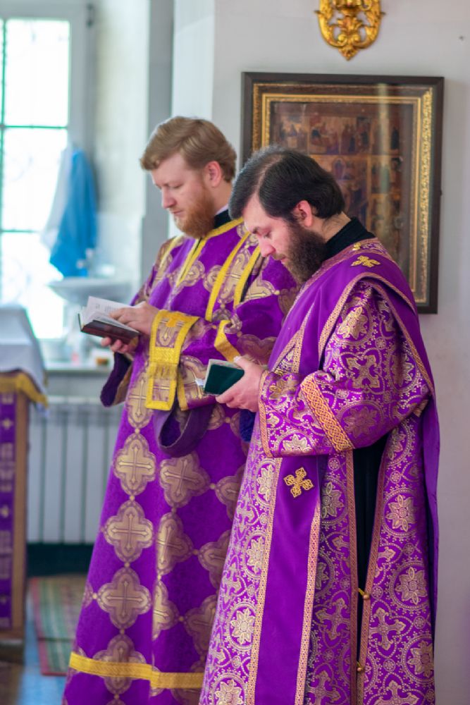 Владыке сослужили секретарь Йошкар-Олинского епархиального управления иеромонах Серафим (Пасанаев), настоятель храма иерей Александр Лоскутов, диаконы Артемий Бобоч и Вячеслав Булычев. Песнопения исполнял хор храма.