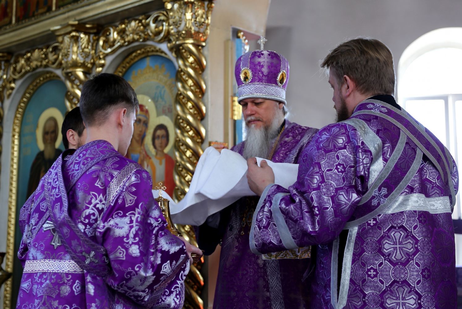 В Неделю 5-ю Великого поста епископ Феофан возглавил Божественную литургию в Никольском соборе г. Волжска 4279