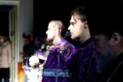 За Литургией были вознесены особые молитвенные прошения в связи с угрозой распространения коронавирусной инфекции и прочитана молитва об избавлении от вредоносного поветрия.