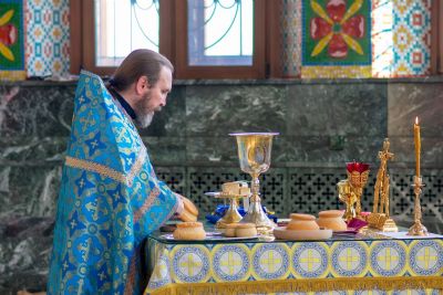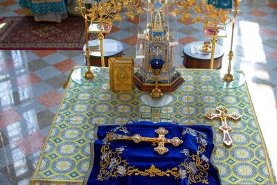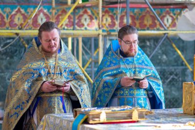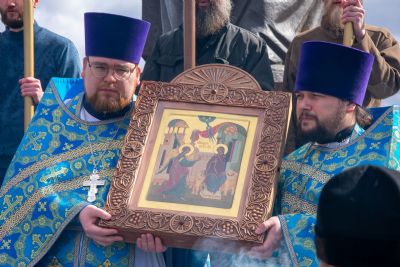 После Литургии в ознаменование престольного праздника состоялся крестный ход вокруг храма с чтением Евангелия и кроплением святой водой.