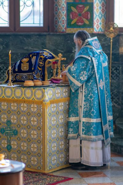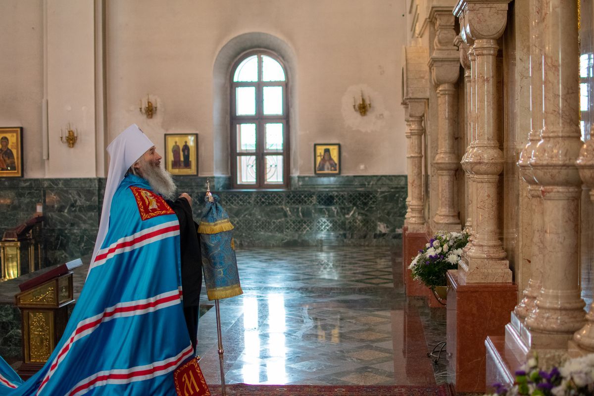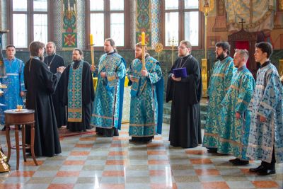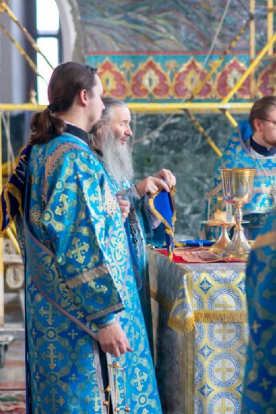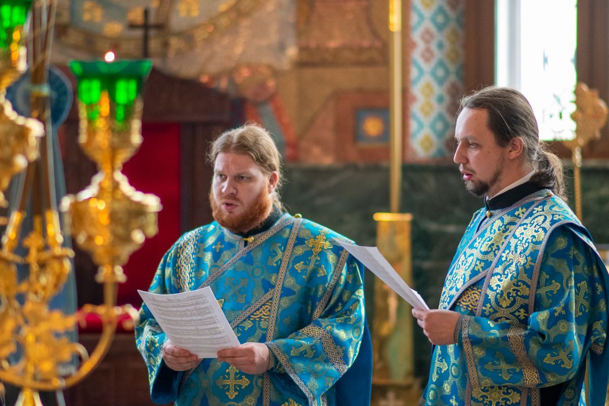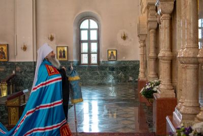Его Высокопреосвященству сослужили секретарь Йошкар-Олинского епархиального управления иеромонах Серафим (Пасанаев), ключарь собора протоиерей Сергий Поглазов, клирики собора иереи Никифор Захаров, Евгений Самойлов, Артемий Промович, диаконы Андрей Дружинин и Игорь Коваль.