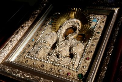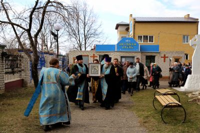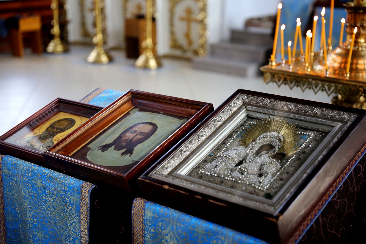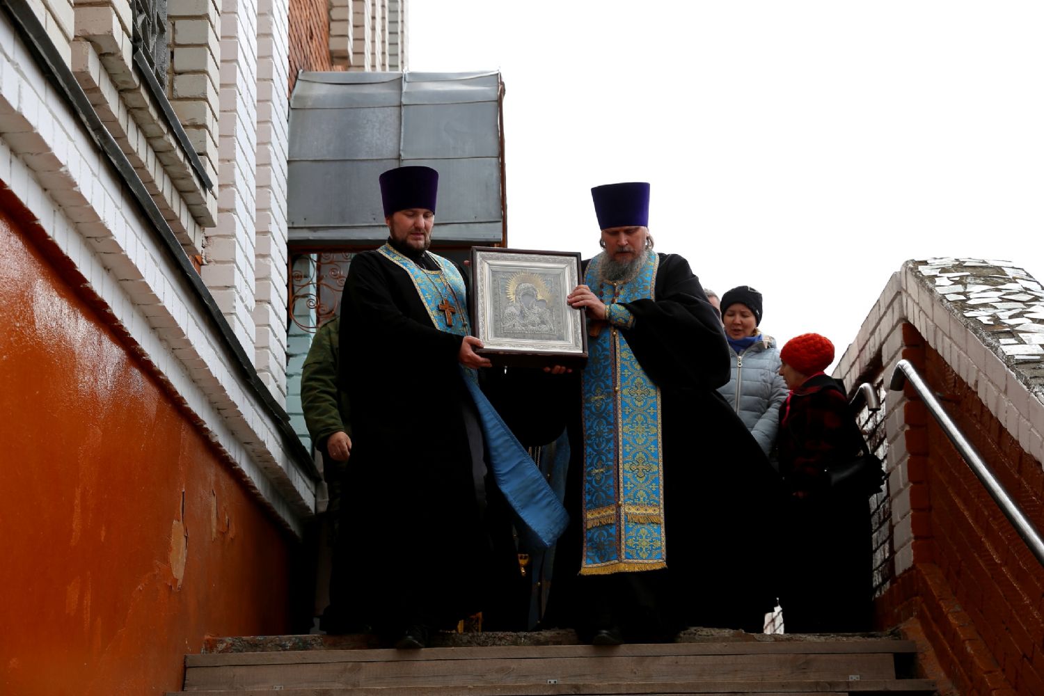 Крестный ход завершился в Никольском соборе чтением молитвы Божией Матери перед Её образом «Смоленская Седмиезерная», именуемая «Одигитрия».