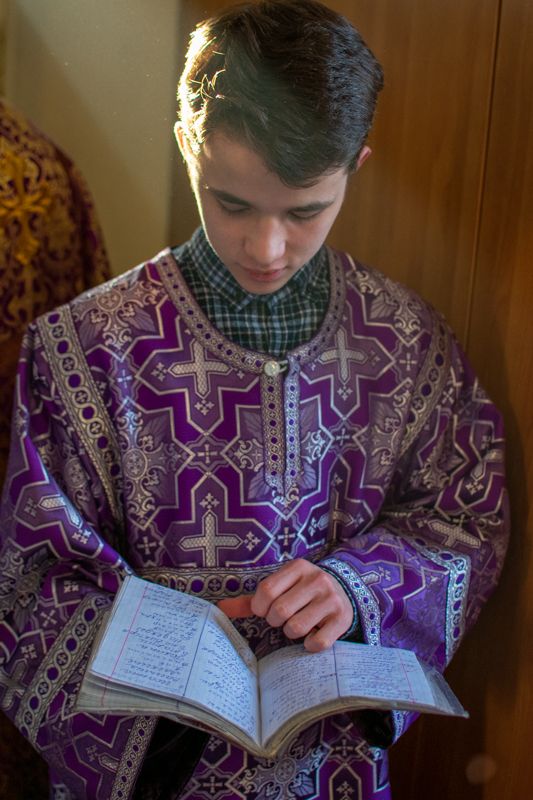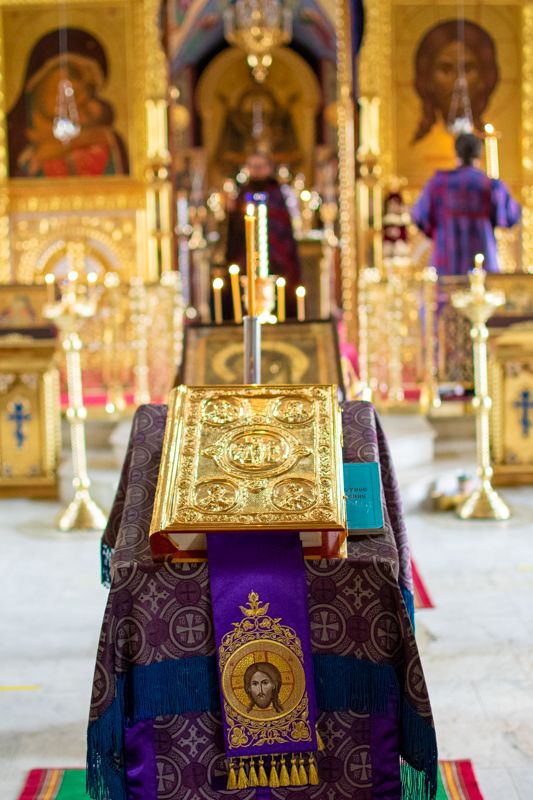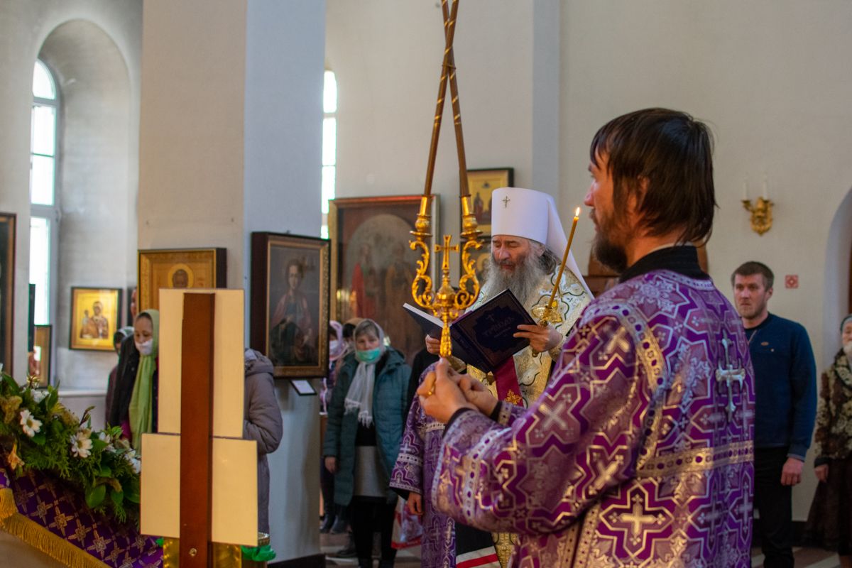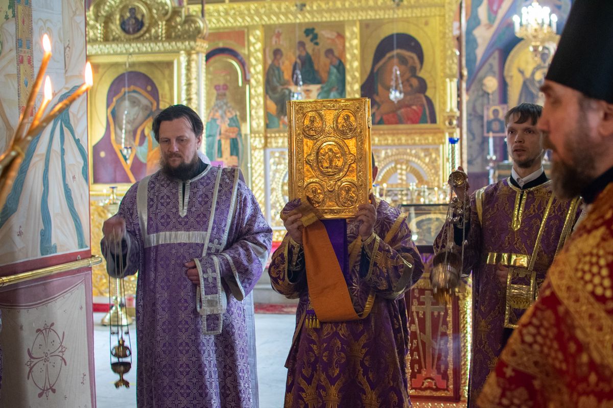 После чтения трех кафизм на утрене в алтаре Владыка прочитал отрывок из Евангелия от Иоанна (12 глава), повествующий о страданиях, будущей славе и вере в Господа Иисуса Христа.