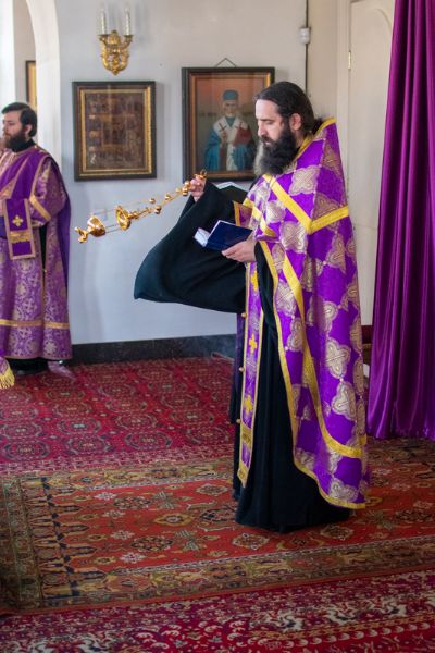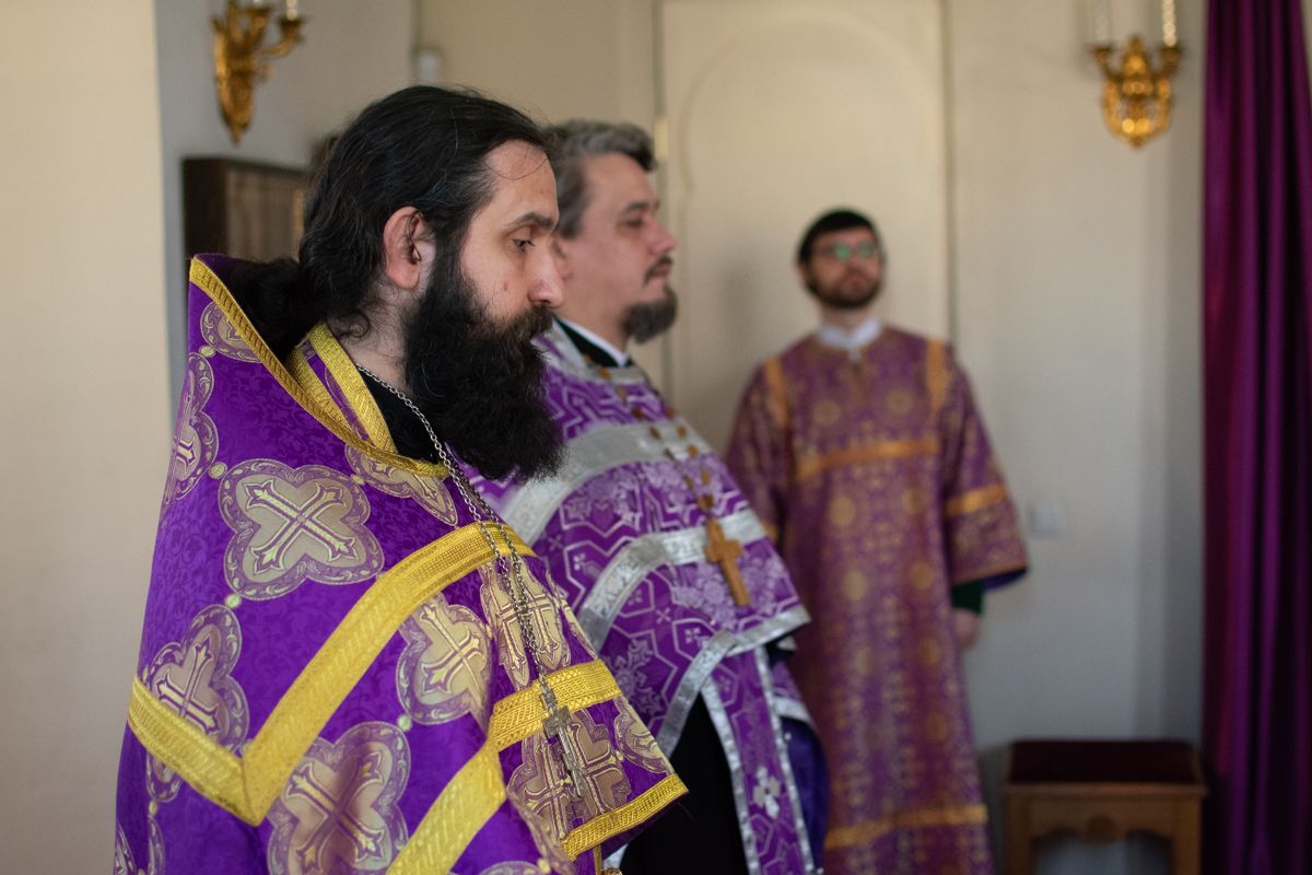 За Божественной литургией читались отрывки из книги Исход (2 глава) о бегстве Моисея в землю Мадиамскую, из книги Иова (2 глава) о страданиях праведного Иова и из Евангелия от Матфея (26 глава) о помазании Господа Иисуса благовонным миром в Вифании.