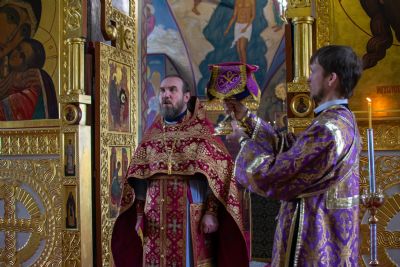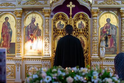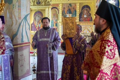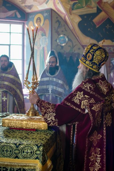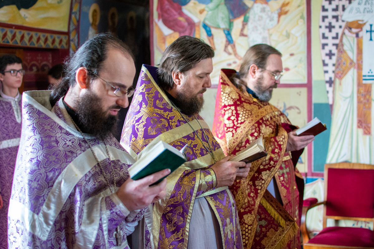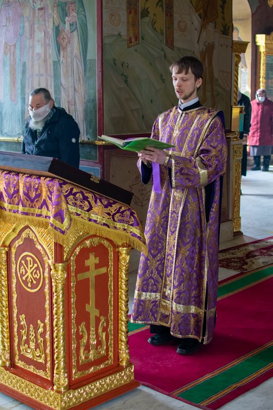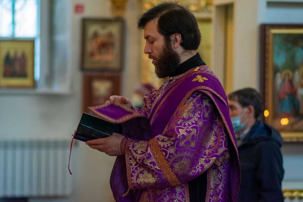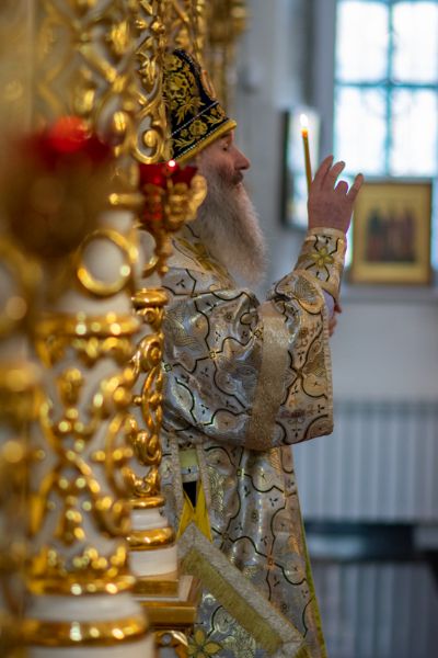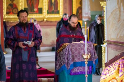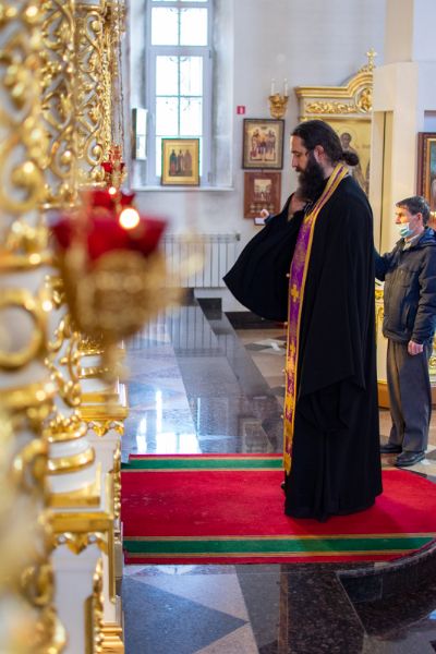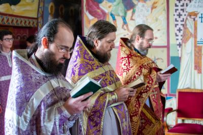 Владыке сослужили настоятель храма иерей Александр Лоскутов, клирики храма иереи Димитрий Дьяков, Никита Смирнов, Евгений Симаков и диакон Артемий Бобоч. Песнопения исполнял хор храма под руководством регента Наталии Поповой.