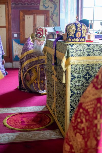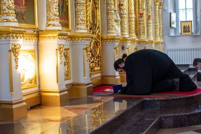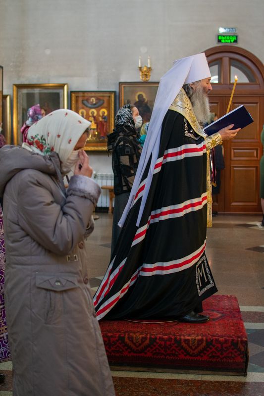 После заамвонной молитвы Владыка с сослужащим духовенством последний раз в этом году прочитал молитву Ефрема Сирина с земными поклонами.