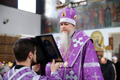 По окончании богослужения епископ Феофан обратился к собравшимся с архипастырским словом: «Сегодня Церковь воспоминает великое событие из жизни Спасителя и Его апостолов – Господь наш Иисус Христос в Сионской горнице со Своими учениками сотворил Тайную Вечерю, и этот день стал днём рождения Таинства Евхаристии или Таинства Причастия. Воистину этот день можно приравнять к двунадесятым праздникам, ибо, действительно, в этот день впервые совершилось Причастие Телом и Кровью Спасителя учеников Господа нашего Иисуса Христа.