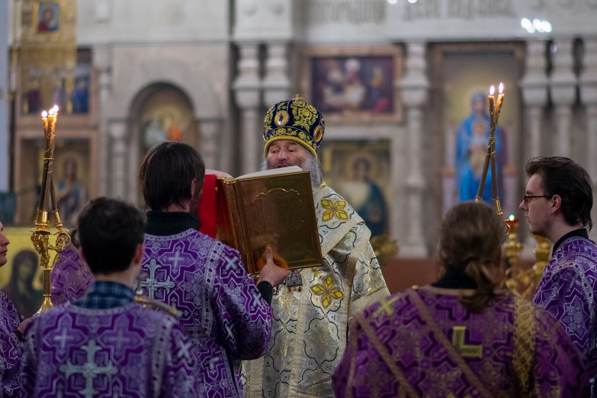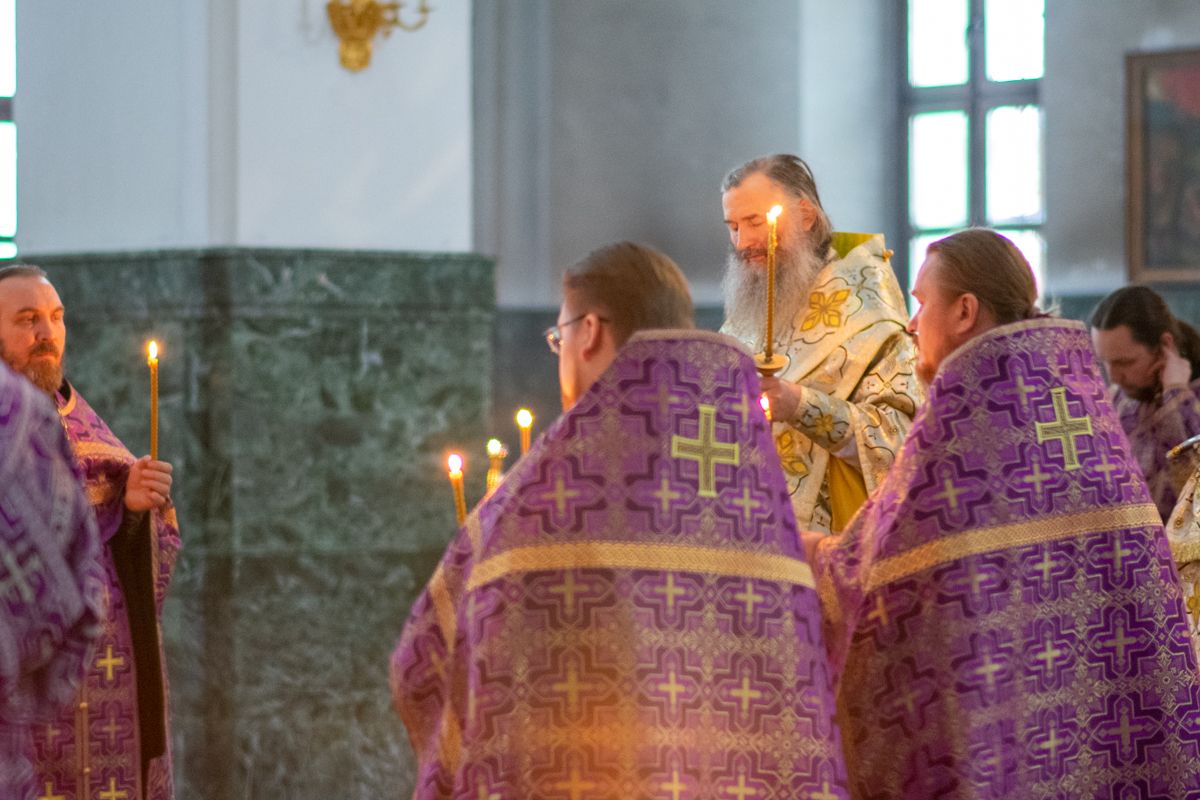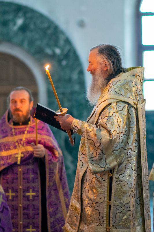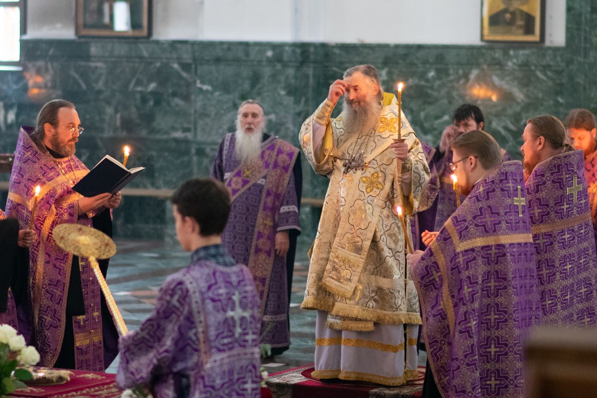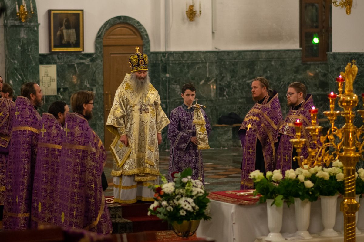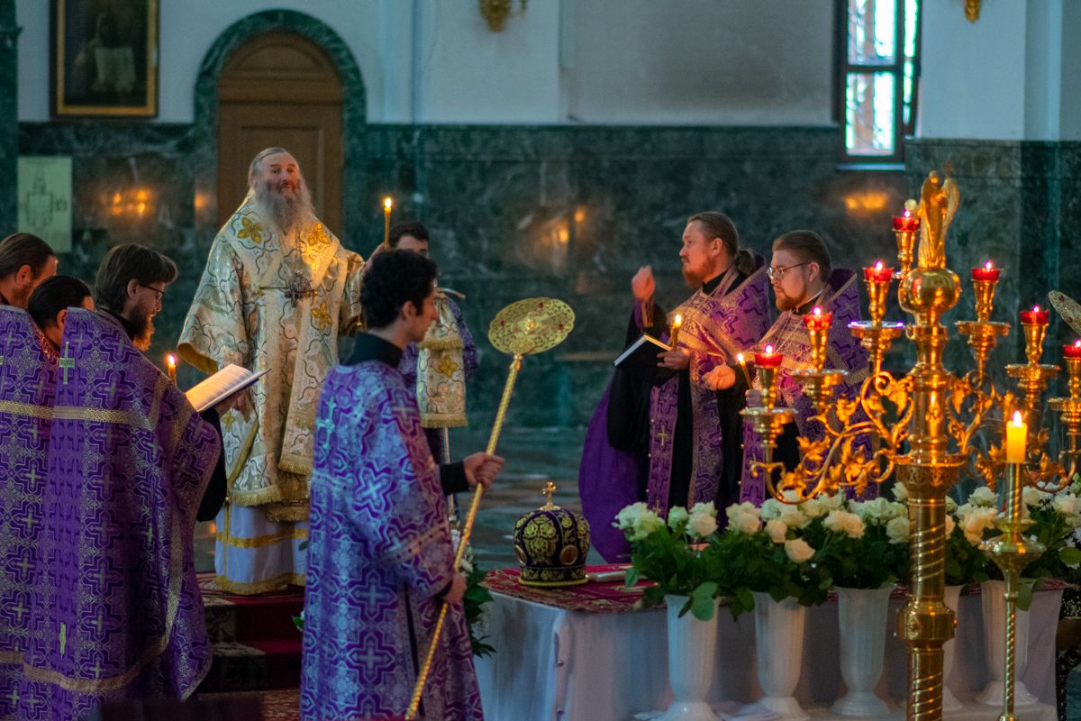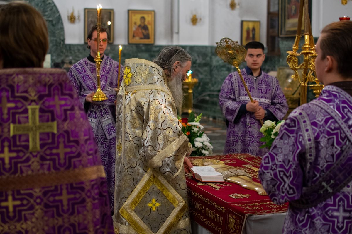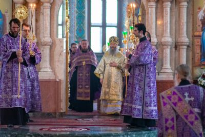 Его Высокопреосвященству сослужили секретарь Йошкар-Олинского епархиального управления иеромонах Серафим (Пасанаев), ключарь собора протоиерей Сергий Поглазов, клирики собора иереи Никифор Захаров, Артемий Промович, Евгений Самойлов, диаконы Андрей Дружинин и Игорь Коваль, клирик храма Рождества Пресвятой Богородицы с.Семеновка протодиакон Михаил Козловский. Песнопения исполнял хор под руководством регента Татьяны Черновой. На официальной странице «Православие в Марий Эл» в социальной сети ВКонтакте велась прямая трансляция богослужения.