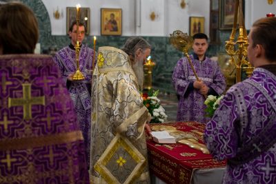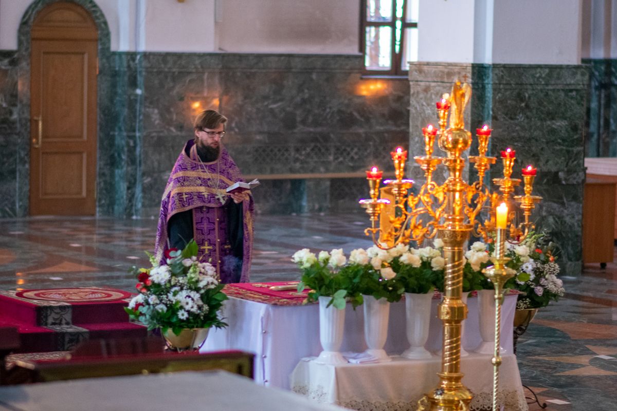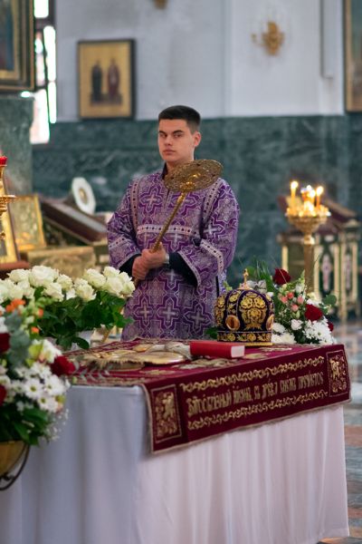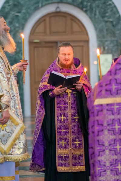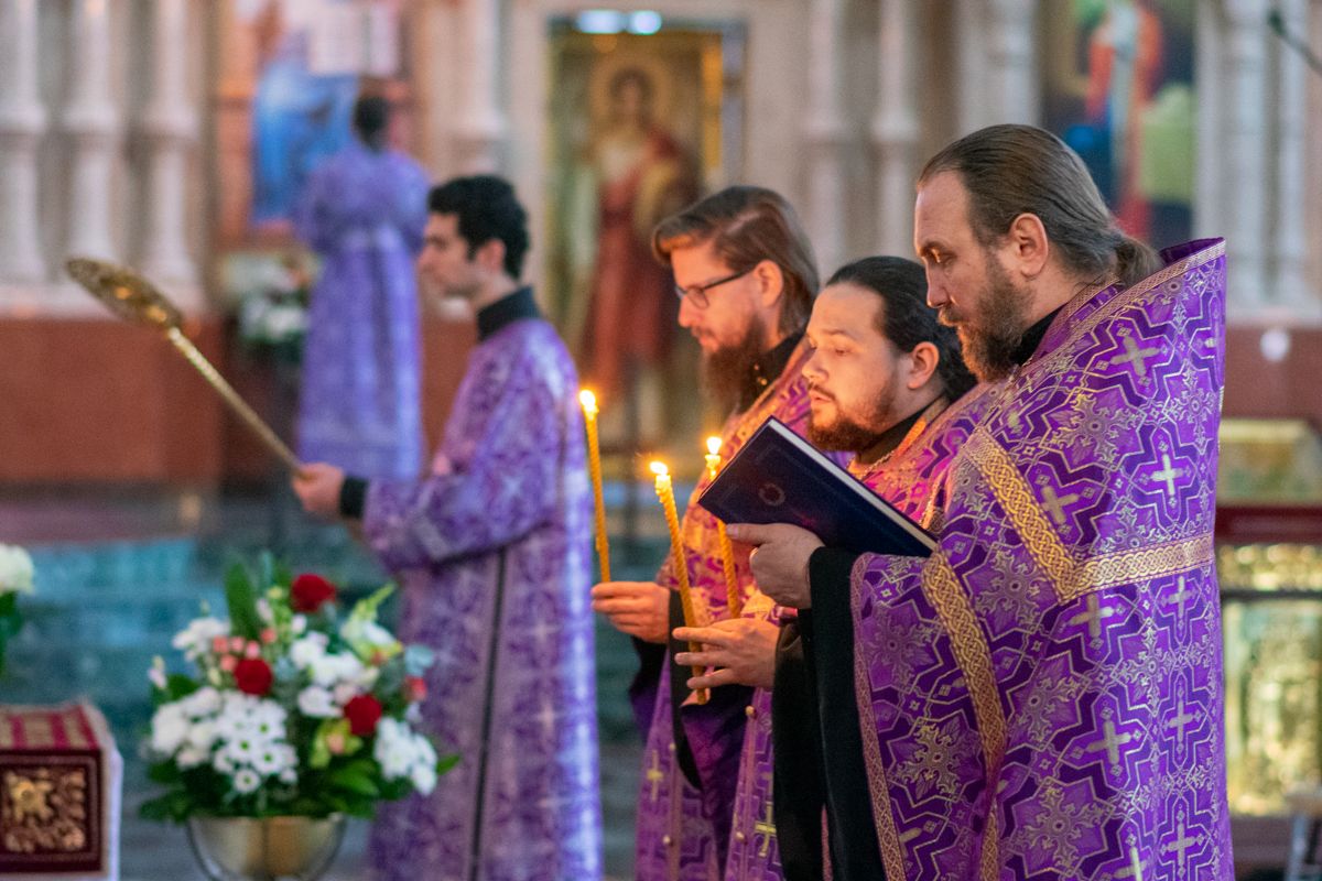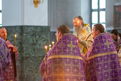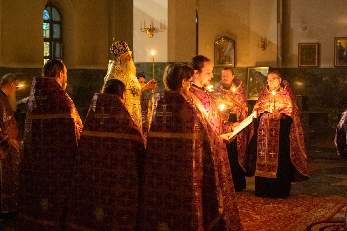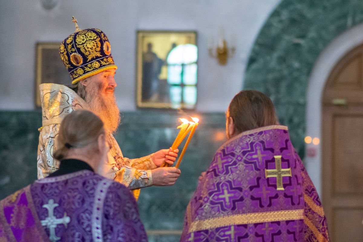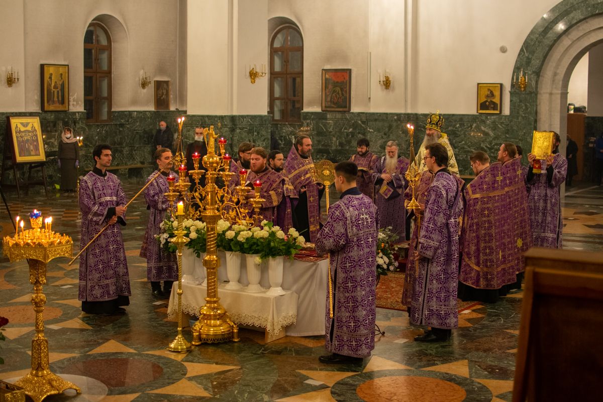 Его Высокопреосвященству сослужили секретарь Йошкар-Олинского епархиального управления иеромонах Серафим (Пасанаев), ключарь собора протоиерей Сергий Поглазов, клирики собора иереи Никифор Захаров, Артемий Промович, Евгений Самойлов, диаконы Андрей Дружинин и Игорь Коваль, клирик храма Рождества Пресвятой Богородицы с.Семеновка протодиакон Михаил Козловский. Песнопения исполнял хор под руководством регента Татьяны Черновой. На официальной странице «Православие в Марий Эл» в социальной сети ВКонтакте велась прямая трансляция богослужения.