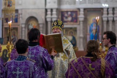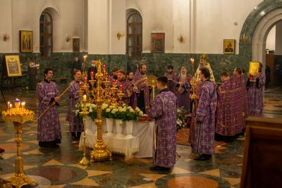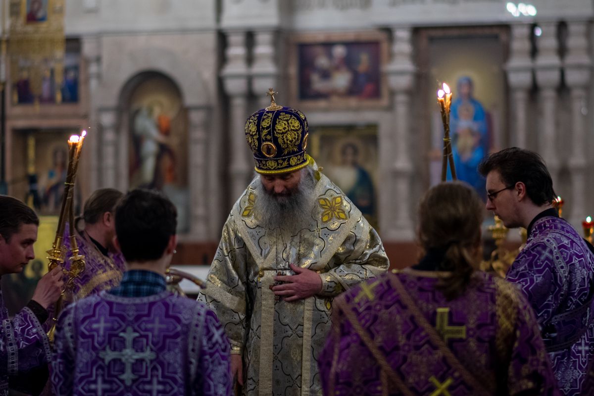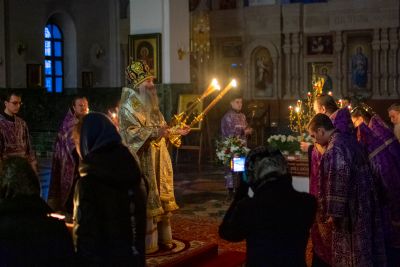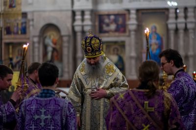 Вечером 17 апреля митрополит Йошкар-Олинский и Марийский Иоанн возглавил утреню Великой субботы с чином погребения Плащаницы в кафедральном соборе Благовещения Пресвятой Богородицы.