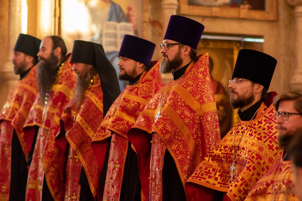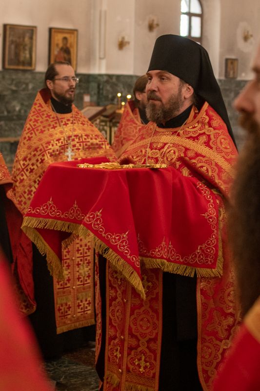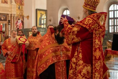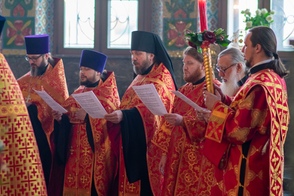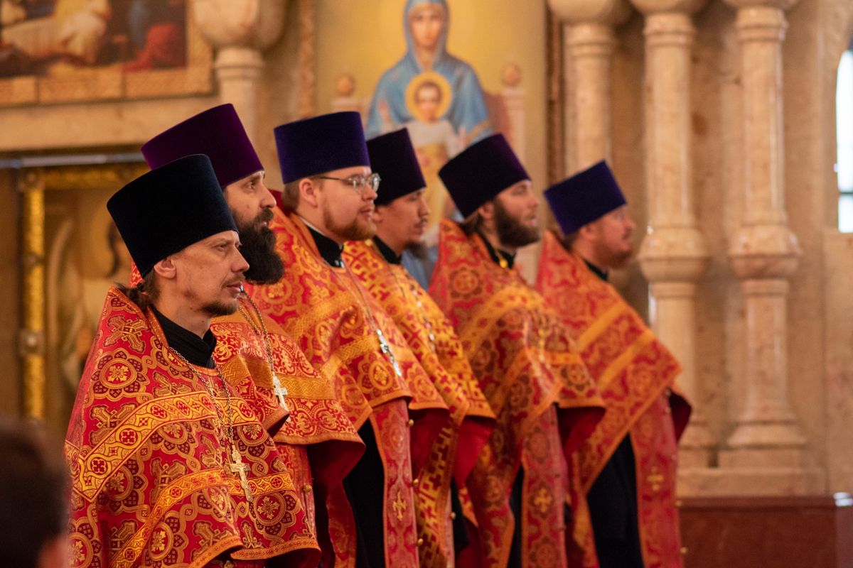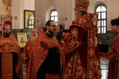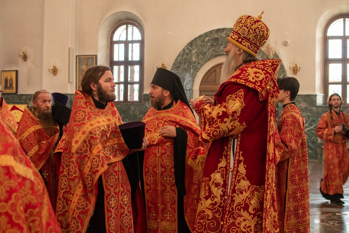 Владыке сослужили секретарь Йошкар-Олинского епархиального управления иеромонах Серафим (Пасанаев), ключарь собора протоиерей Сергий Поглазов, клирики собора иереи Никифор Захаров, Артемий Промович, Евгений Самойлов, диаконы Андрей Дружинин, Игорь Коваль, настоятель храма Иверской иконы Божией Матери г. Йошкар-Ола иерей Михаил Горицкий, старший священник Богородице-Сергиевого монастыря священноинок Паисий (Киселев), клирики храма Рождества Пресвятой Богородицы с. Семеновка иереи Сергий Асланов, Григорий Михалев, протодиакон Михаил Козловский, клирики храма Рождества Христова г. Йошкар-Ола иереи Никита Смирнов, Димитрий Дьяков, настоятель Воскресенского собора г. Йошкар-Олы иерей Алексей Кирюшкин и клирик собора иерей Андрей Кочаков.